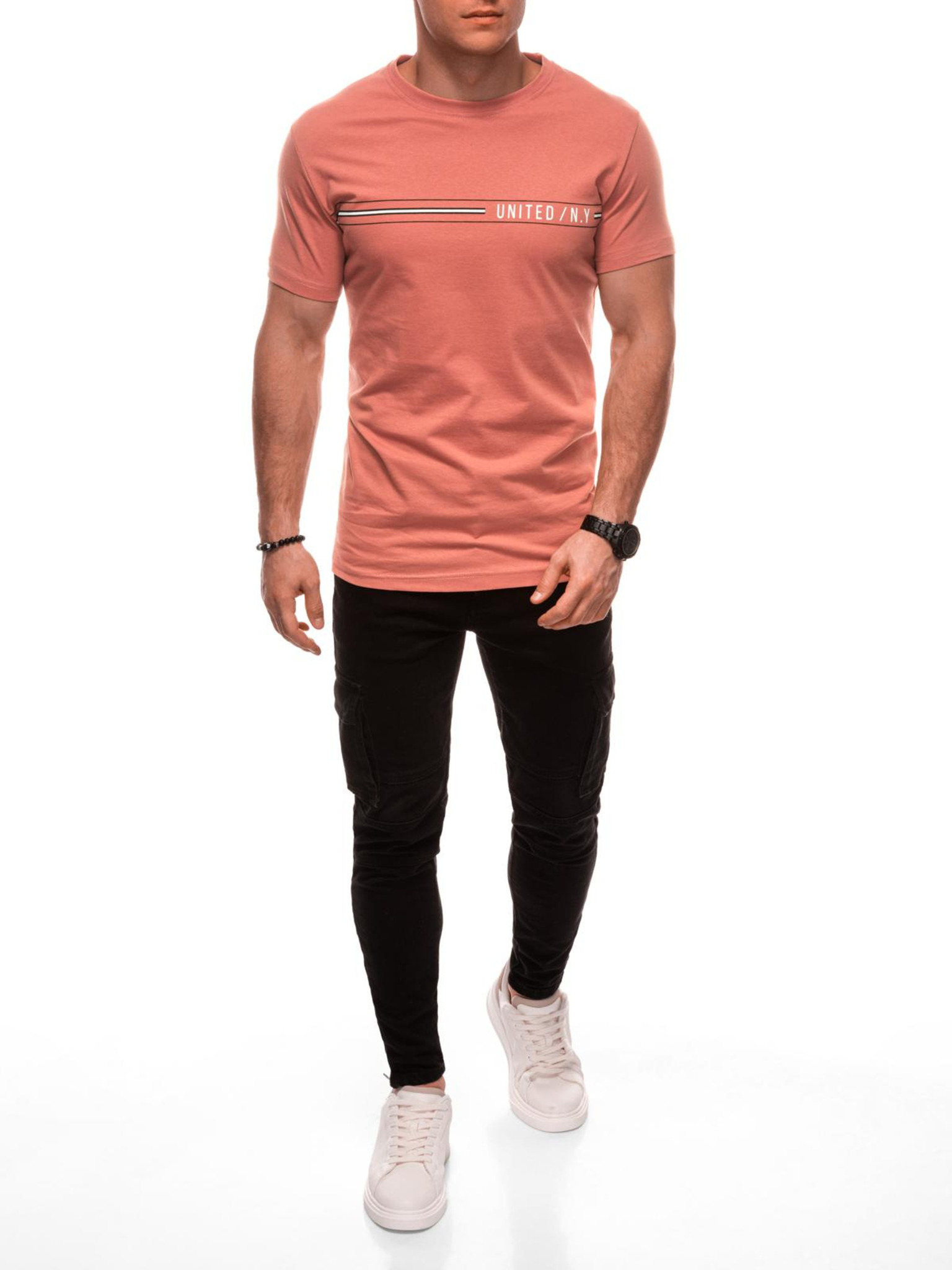 EDOTI Férfi nyomtatott póló, világos rózsaszín