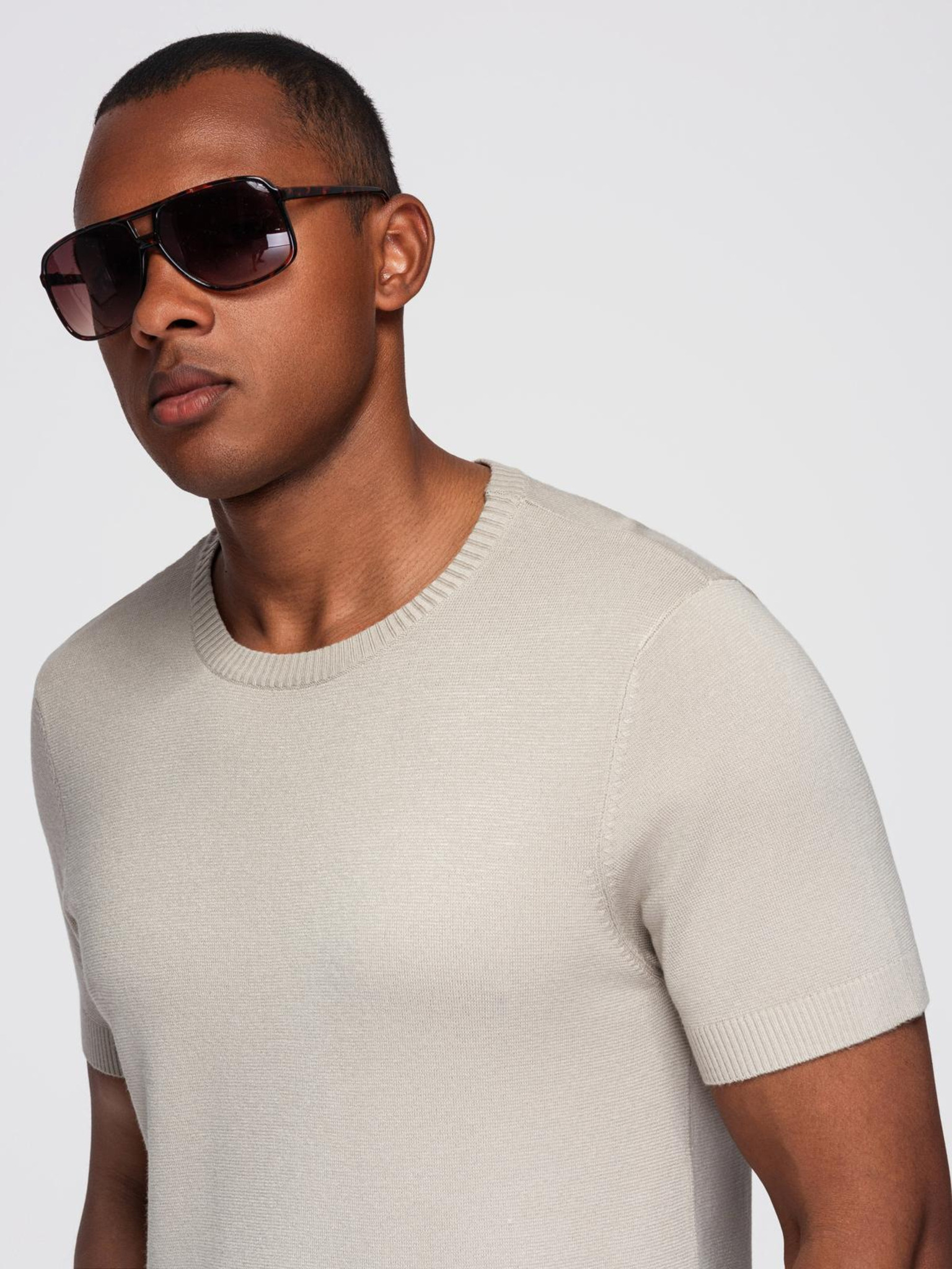 BASIC férfi klasszikus V-nyakú pamut póló - barna