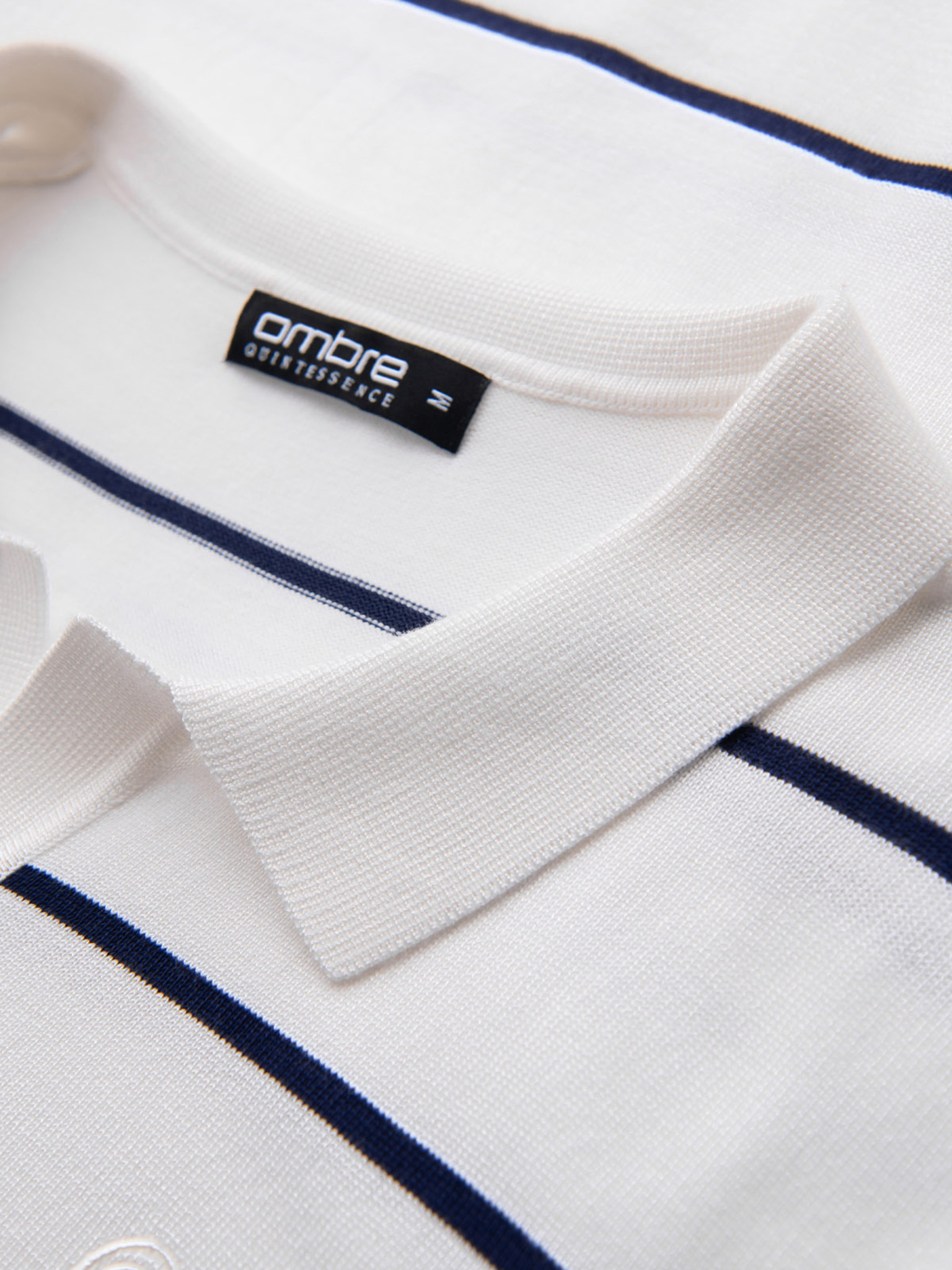 Ombre Clothing férfi hosszú ujjú pamut póló csíkos U-nyakkal és hímzéssel
