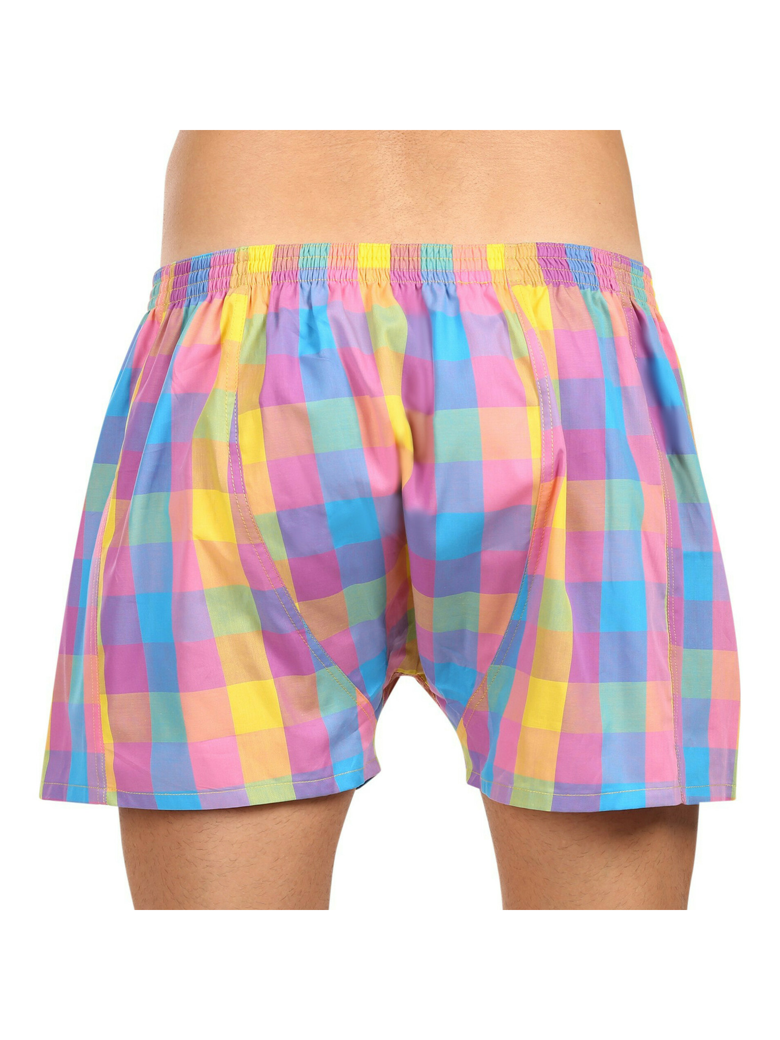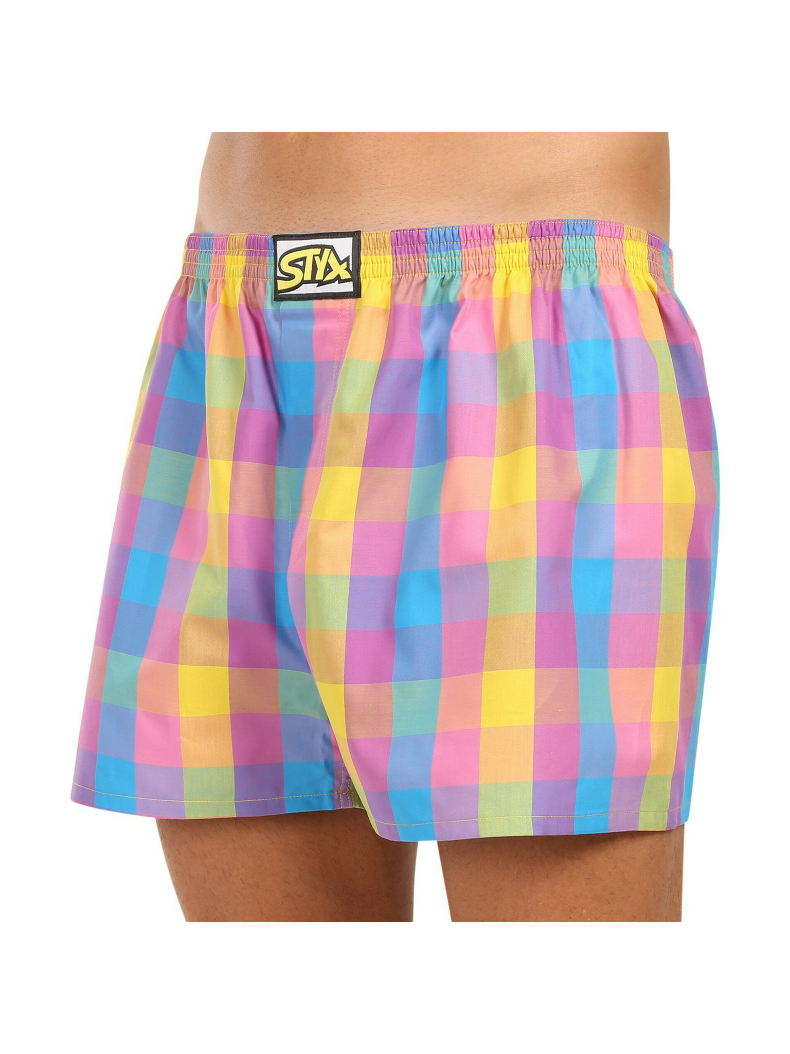 Három darabos férfi kockás rövidnadrág készlet piros, sárga és zöld színben STYX