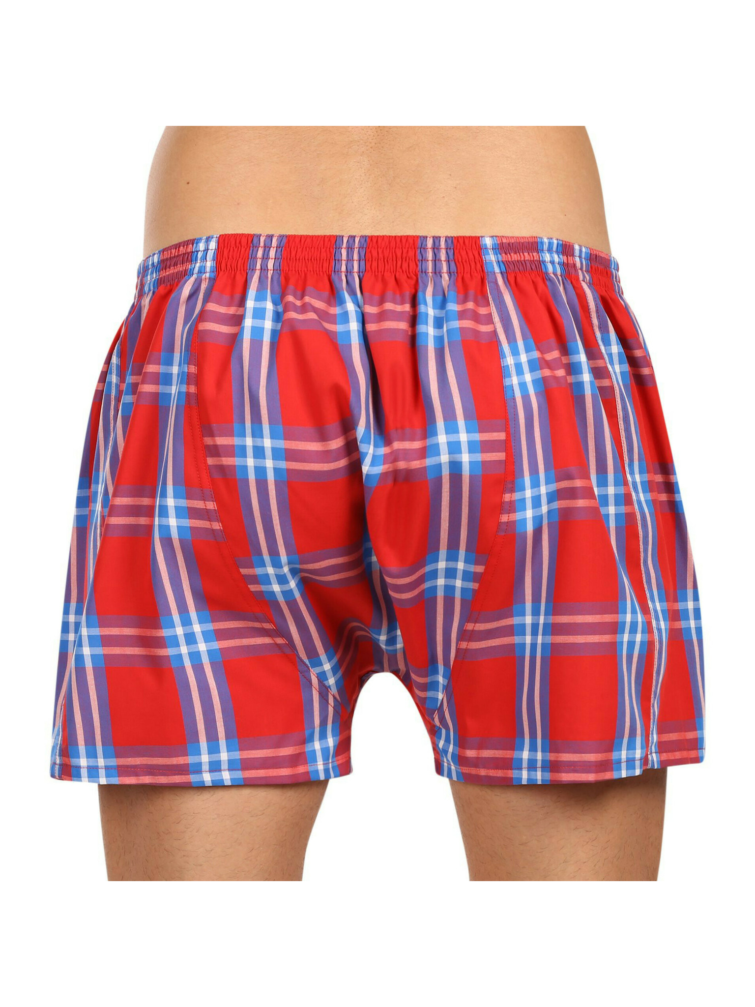 Három darabos férfi kockás rövidnadrág készlet piros, lila és kék színben STYX
