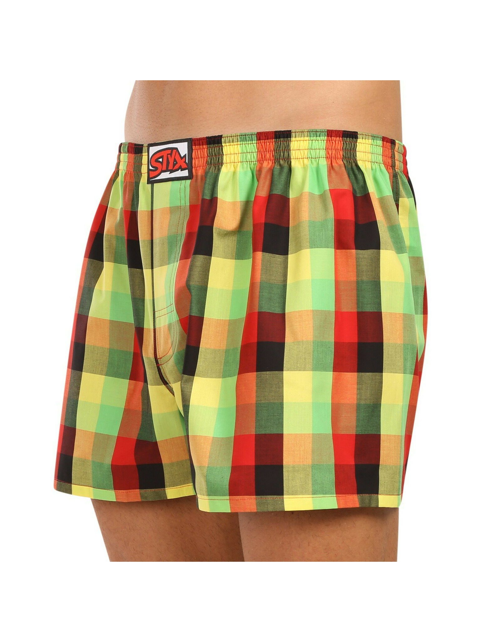 Három darabos férfi kockás rövidnadrág készlet piros, sárga és zöld színben STYX