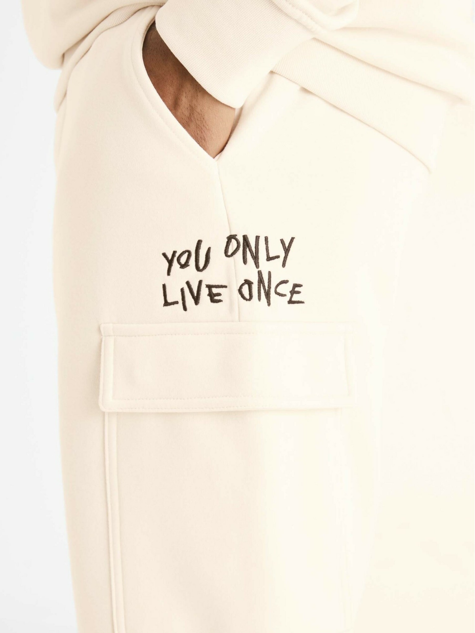 Férfi kötött melegítőnadrág cargo zsebekkel krémszínű Ombre ruházat