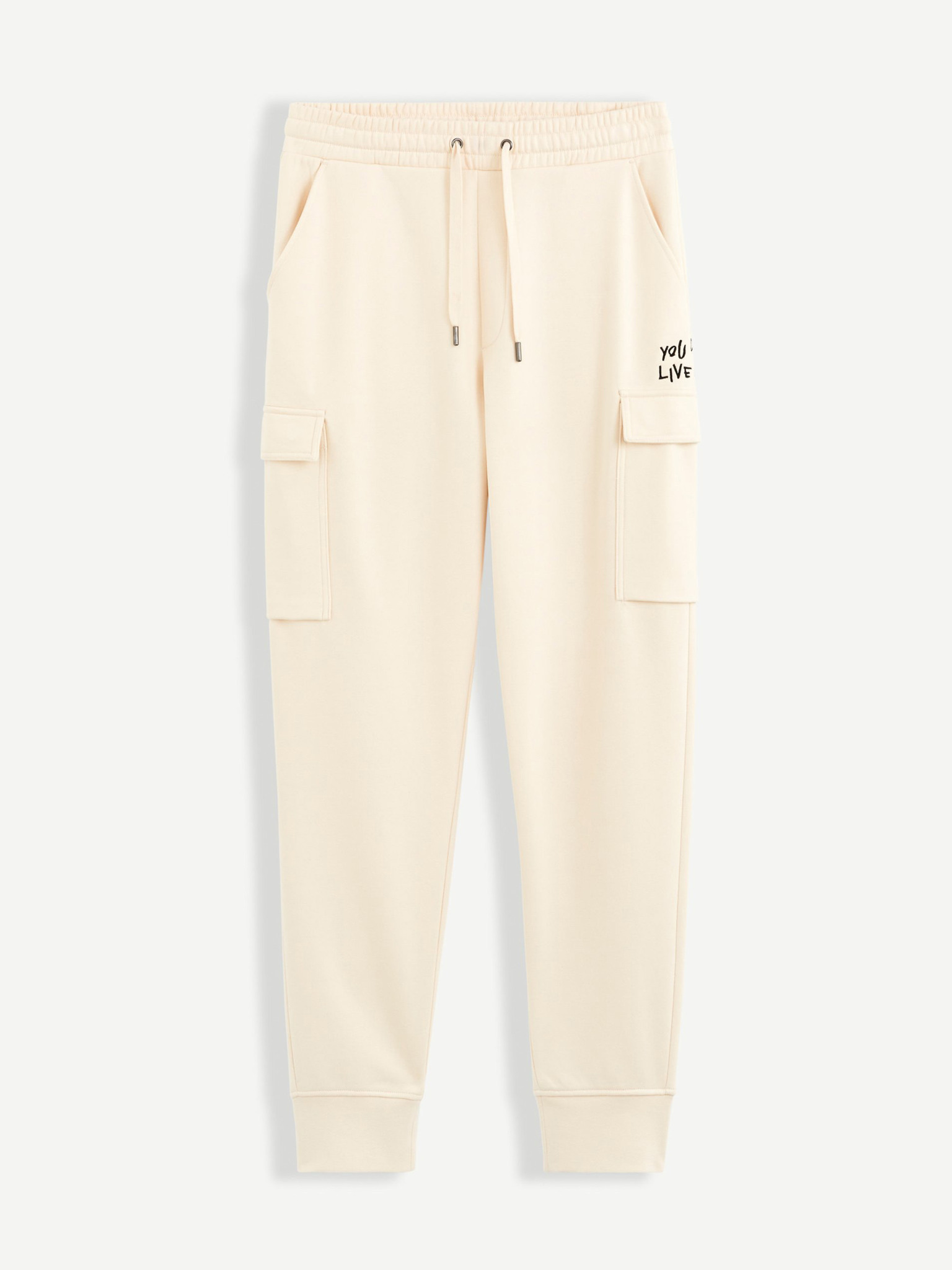 Férfi melegítőnadrág szegéllyel és bordázott szegélyű szárral - krém
