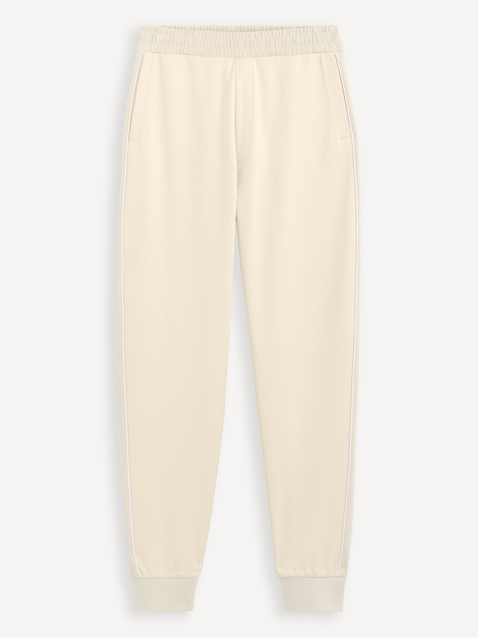 Férfi melegítőnadrág szegéllyel és bordázott szegélyű szárral - krém