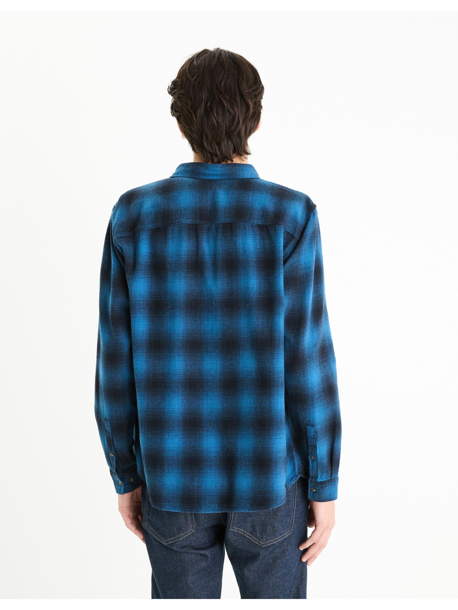 Férfi mintás finom farmer ing zsebbel - világoskék Ombre Clothing
