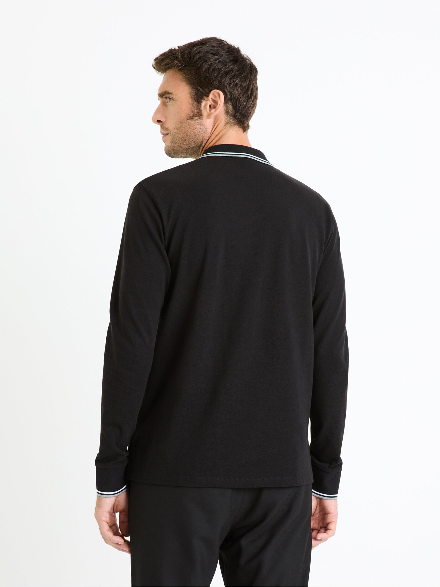 Férfi pólóing nyitott gallérral, gomblyuk nélkül - fekete