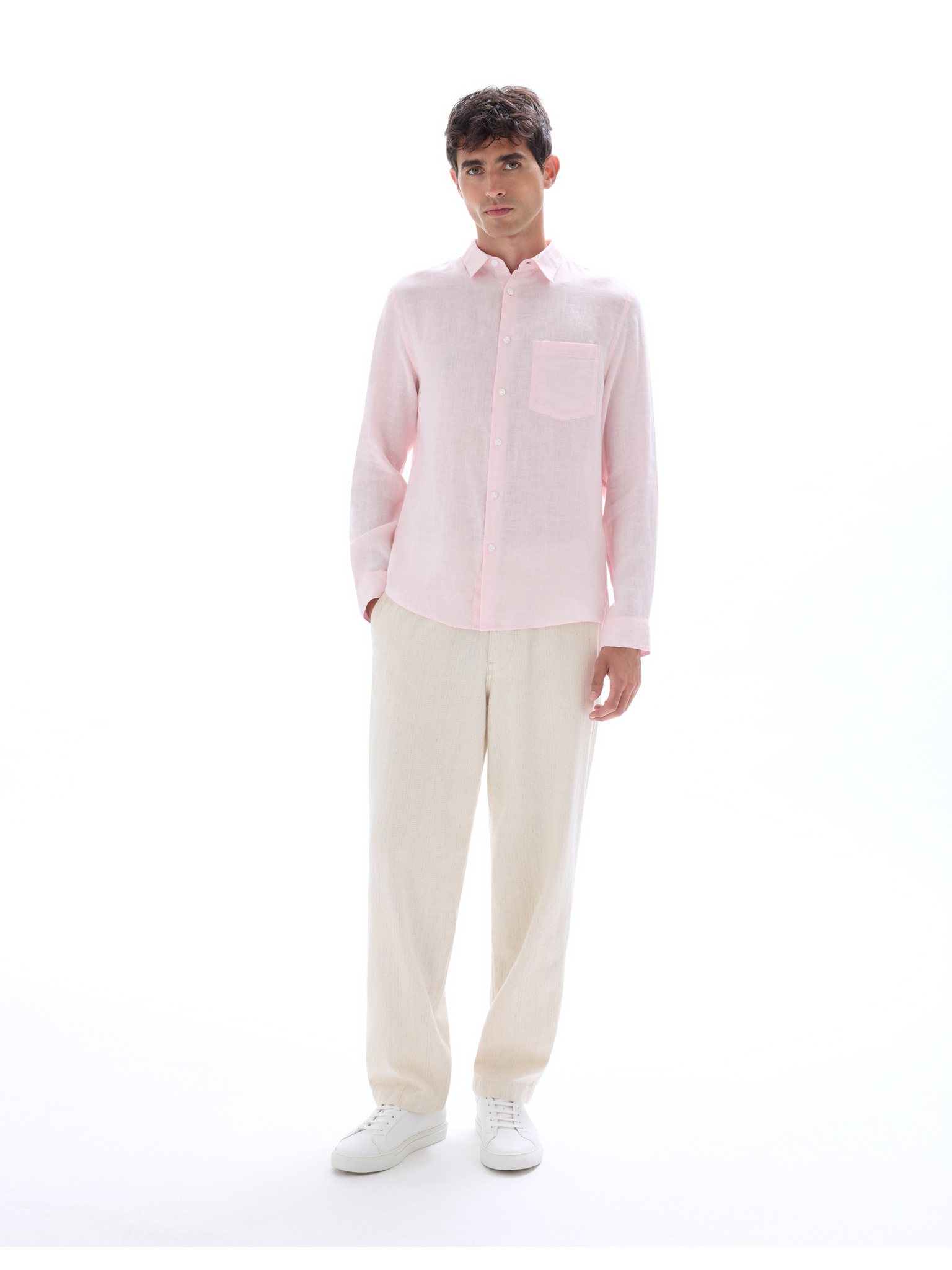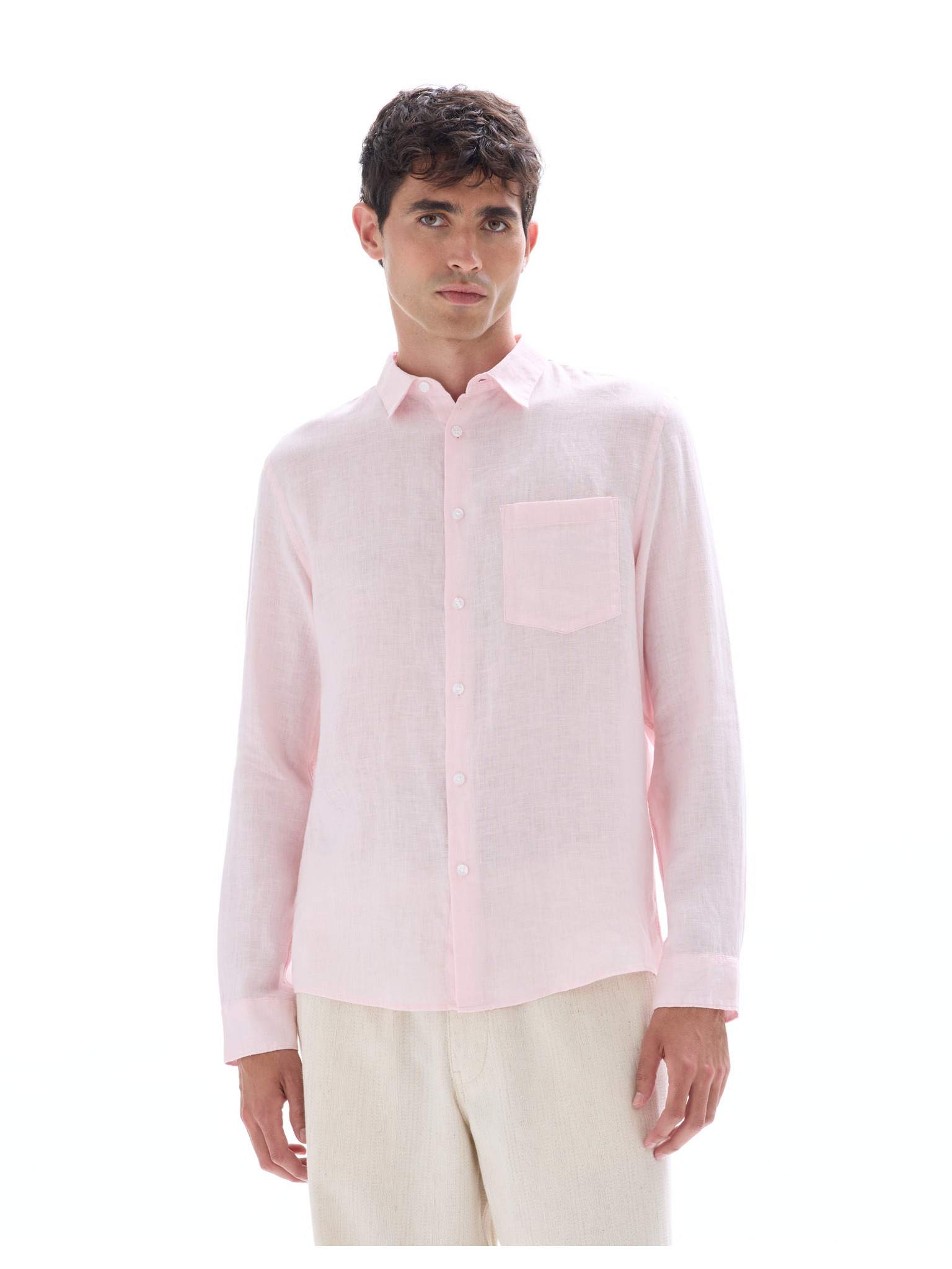 Férfi vászon ing álló gallérral és zsebbel REGULAR FIT - rózsaszín