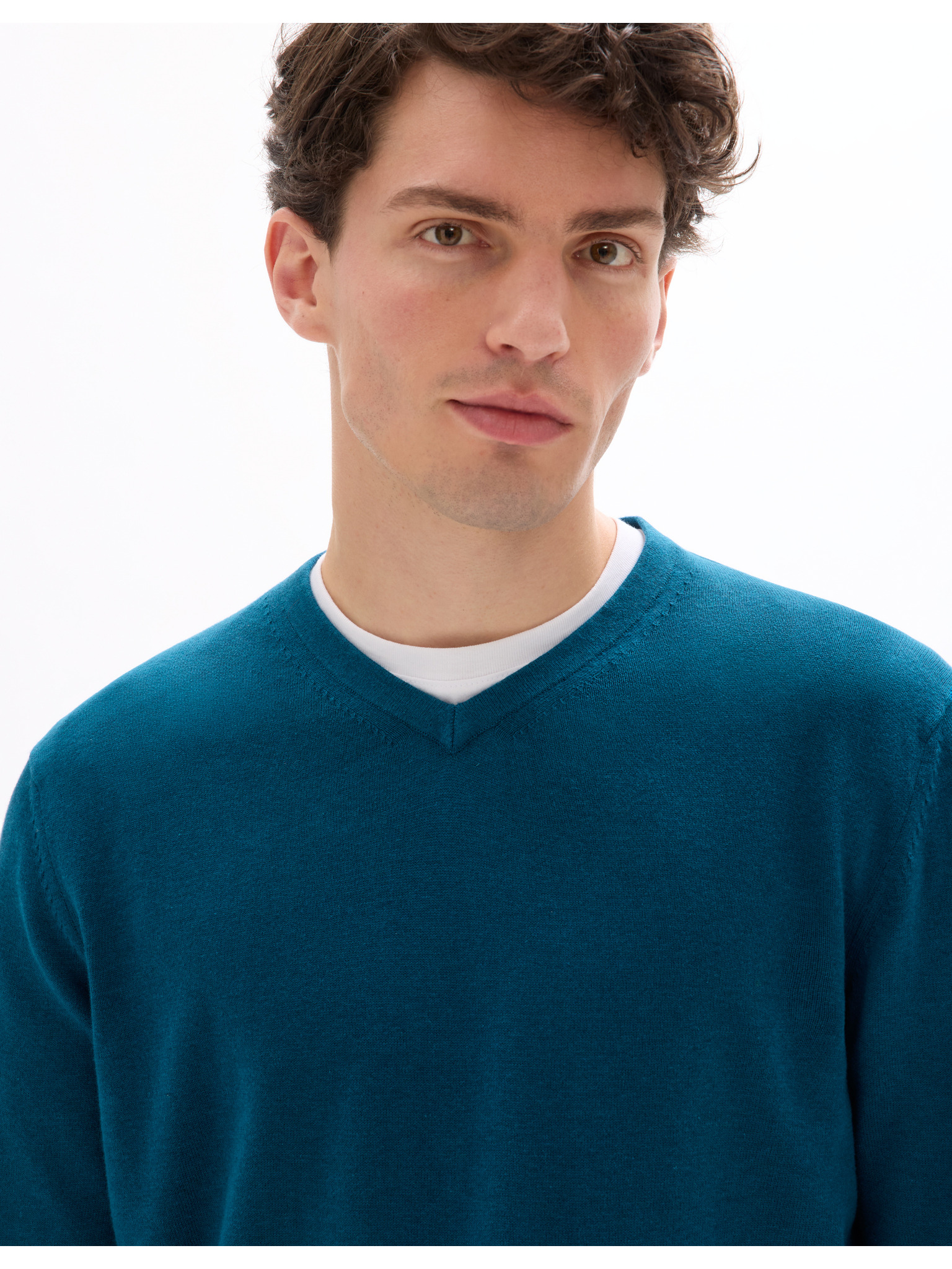 Sötétkék férfi alap v-nyakú pulóver Ombre Clothing
