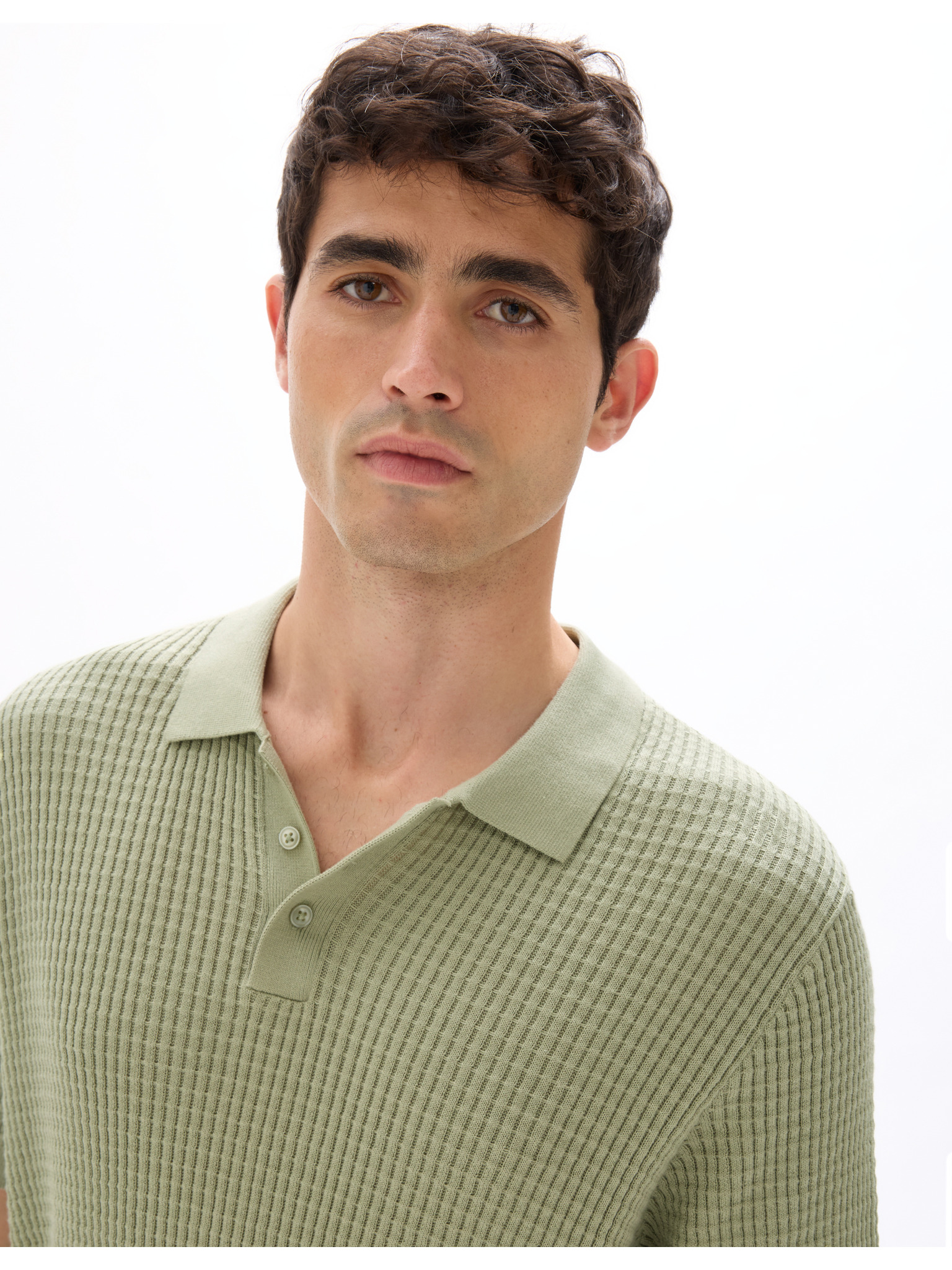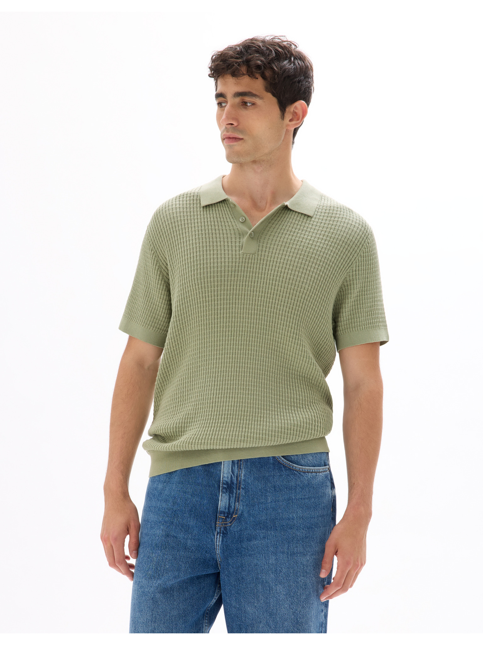 Férfi kötött gomblyuk nélküli pólóing - olíva