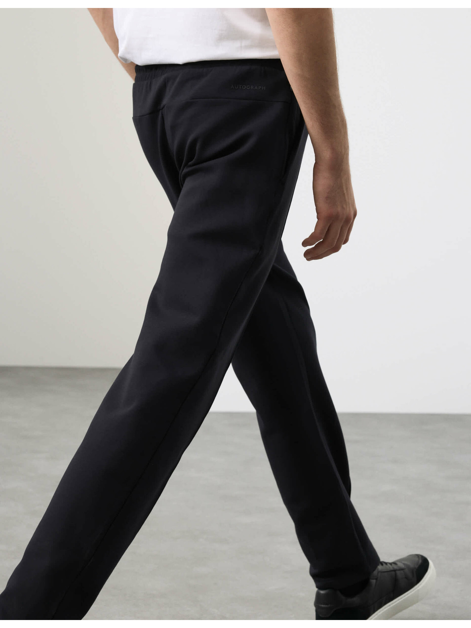 Egyenes szárú melegítőnadrág húzózsinórral és magas pamuttartalommal Marks & Spencer fekete