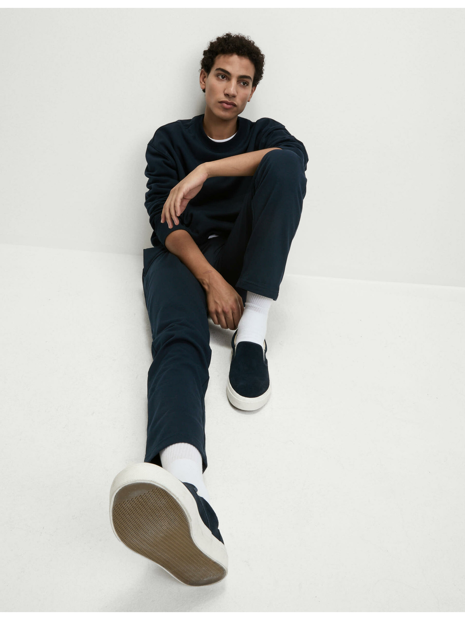 Egyenes szárú melegítőnadrág húzózsinórral és magas pamuttartalommal Marks & Spencer fekete