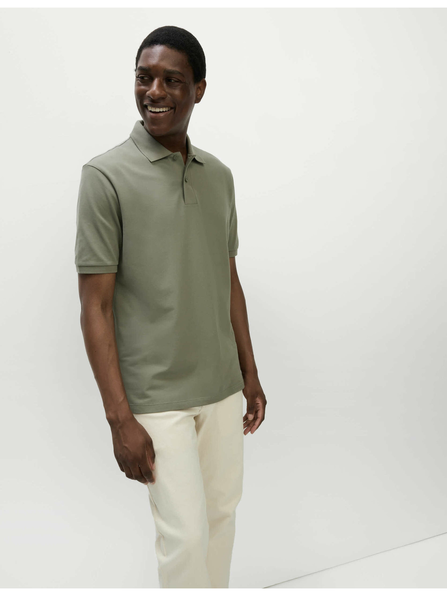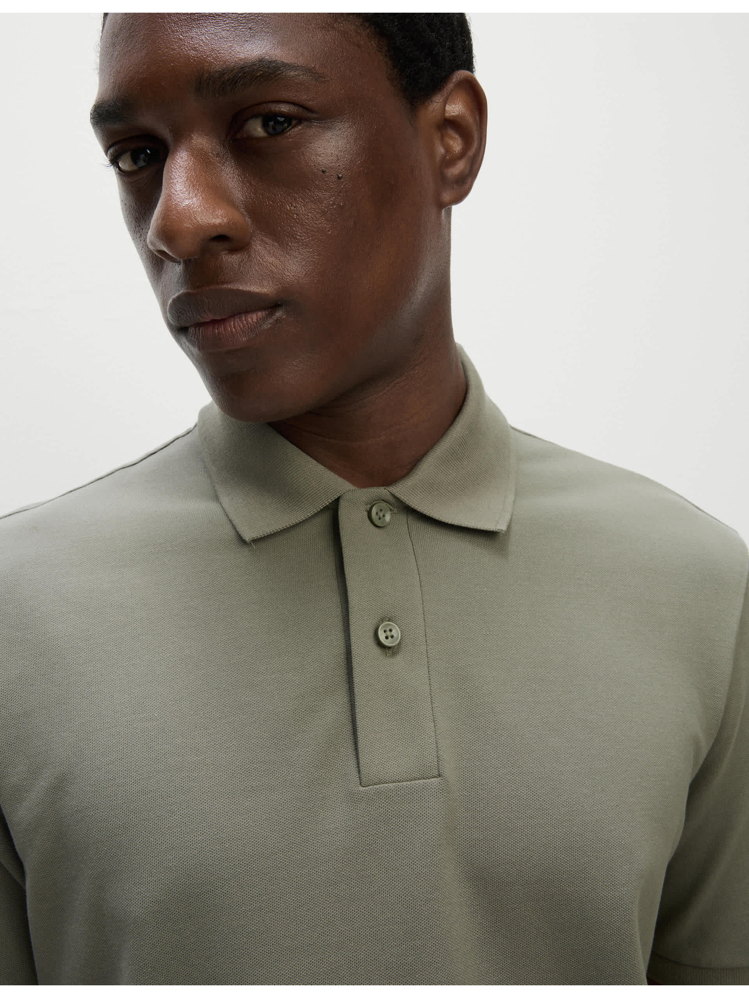 Férfi kötött gomblyuk nélküli pólóing - olíva