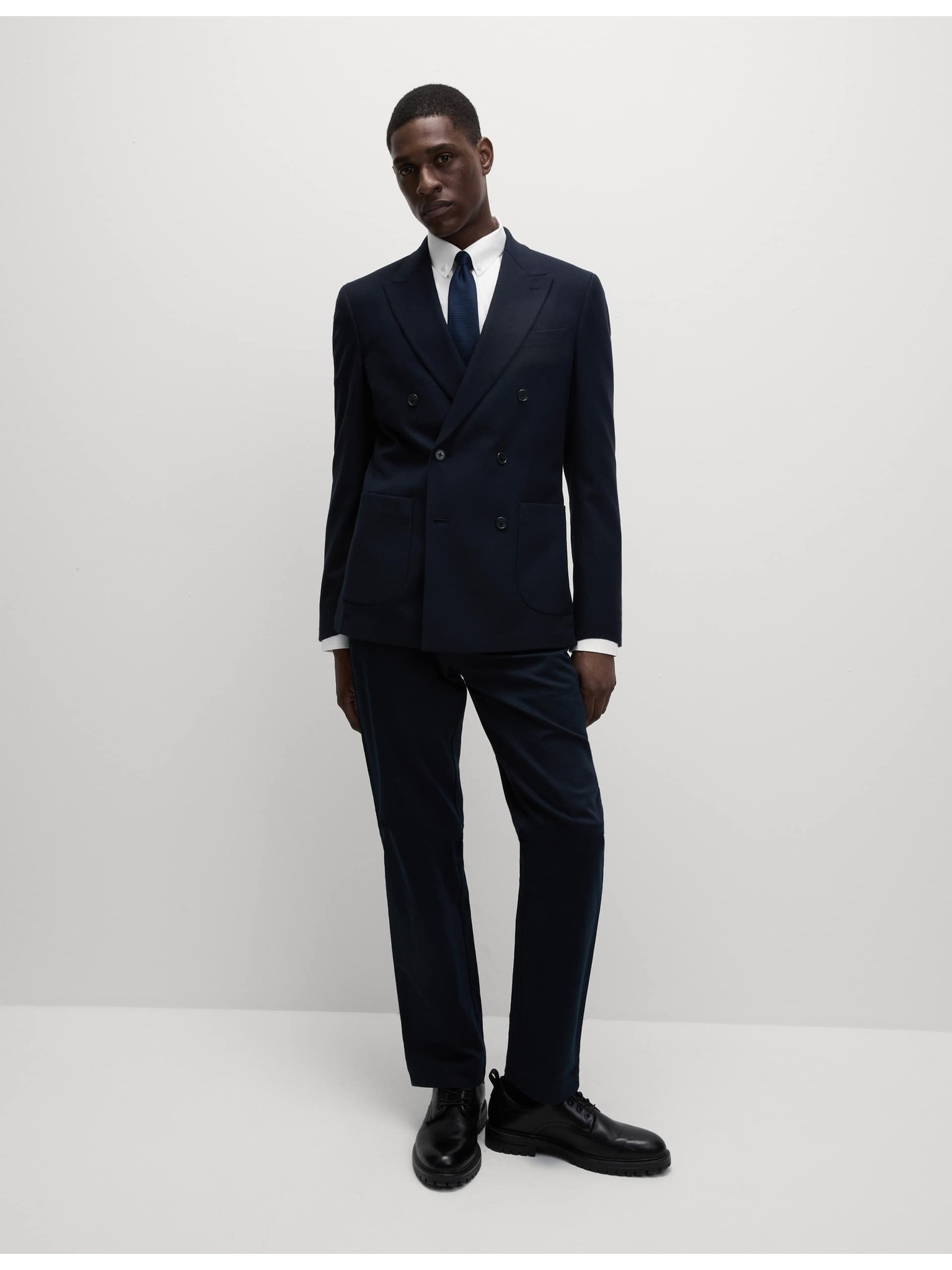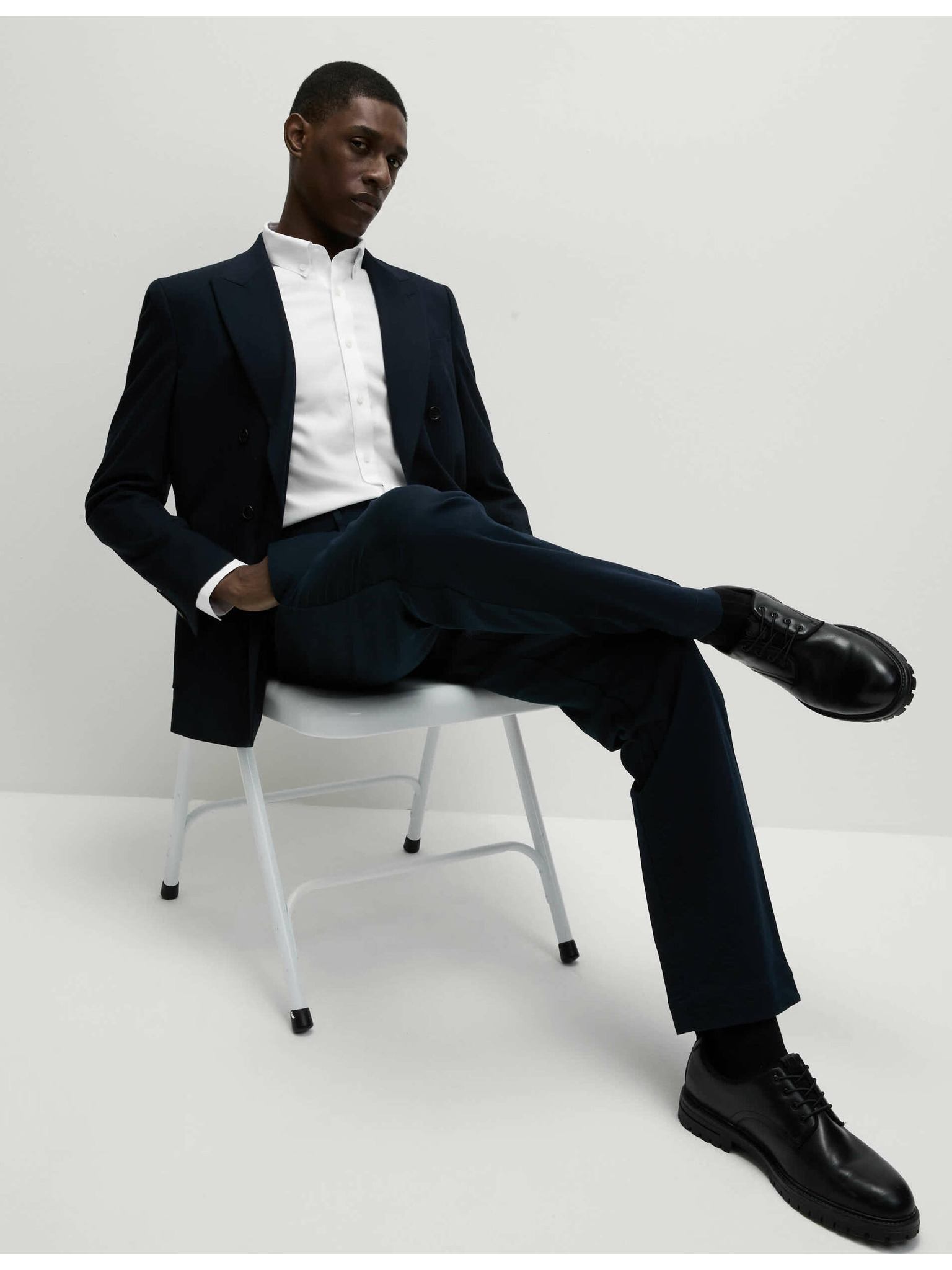 Marks & Spencer tengerészkék, keskeny szabású kevert szövetű ing luxus minőségű pamutból, dupla mandzsettával