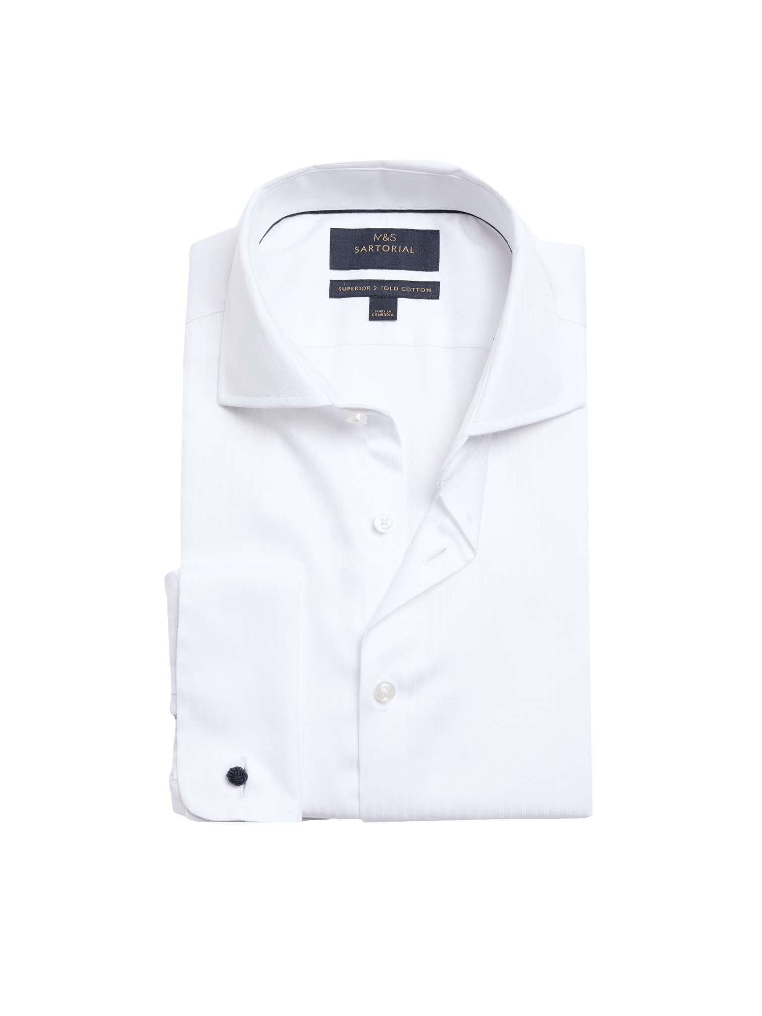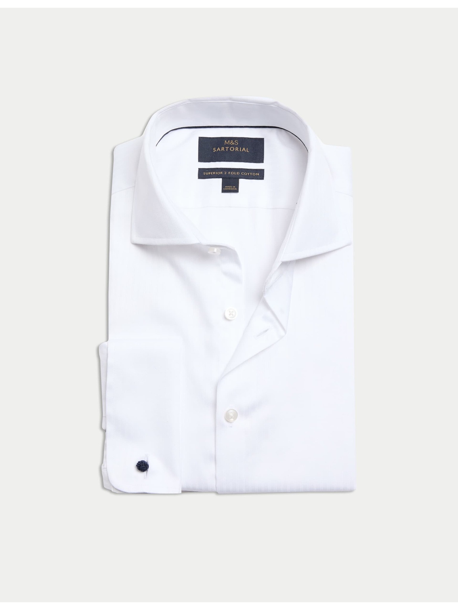 Marks & Spencer tengerészkék, keskeny szabású kevert szövetű ing luxus minőségű pamutból, dupla mandzsettával