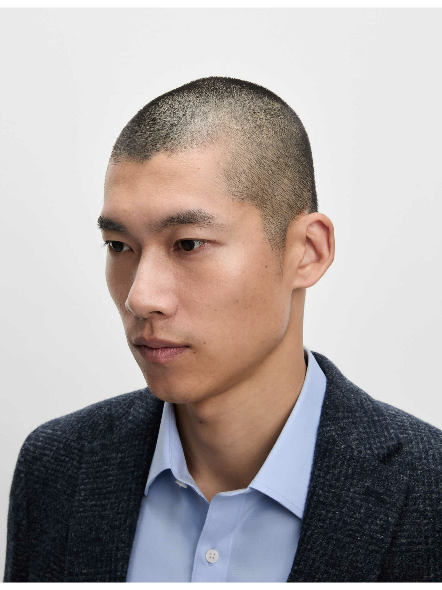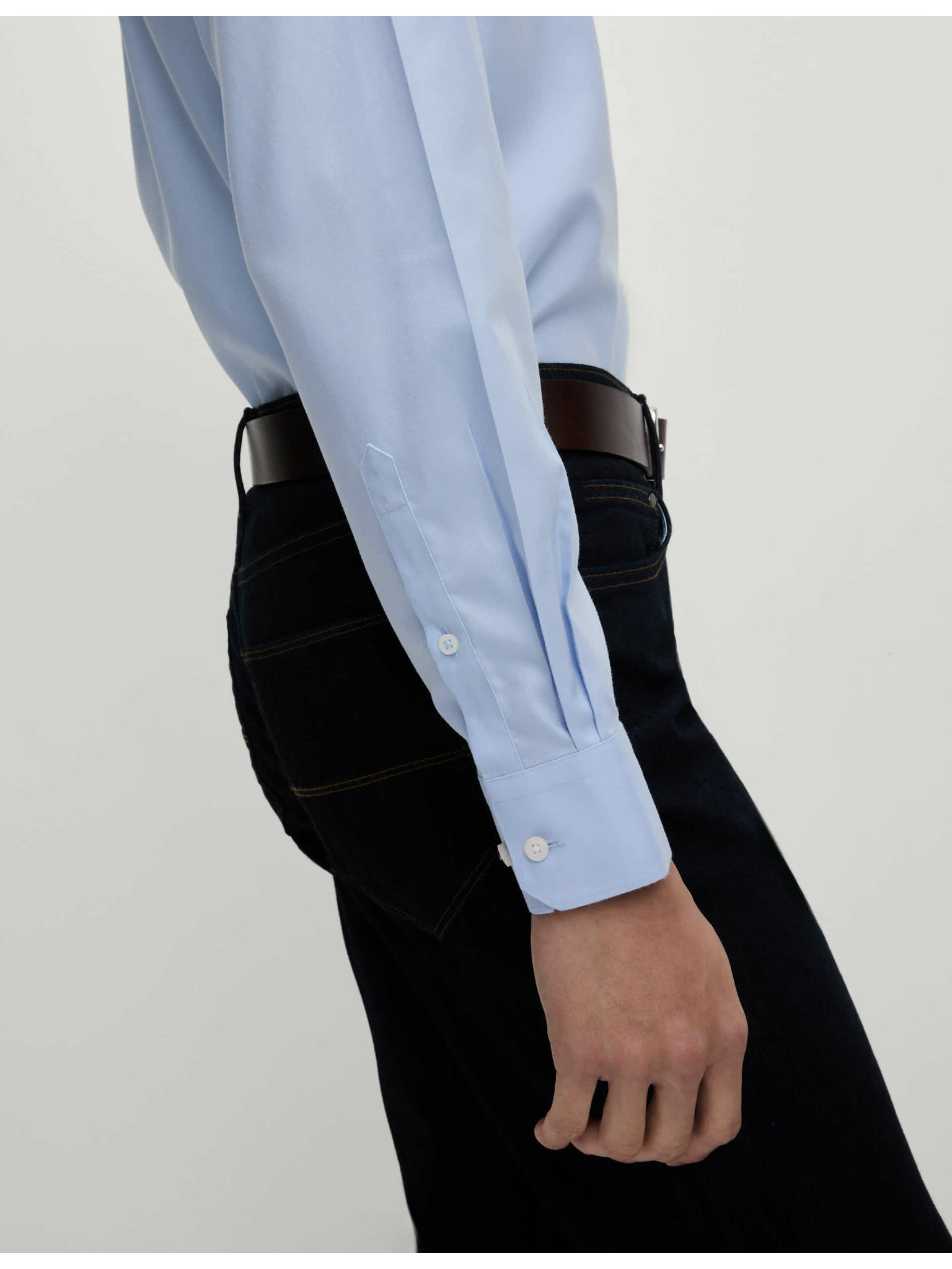 Marks & Spencer tengerészkék, keskeny szabású kevert szövetű ing luxus minőségű pamutból, dupla mandzsettával