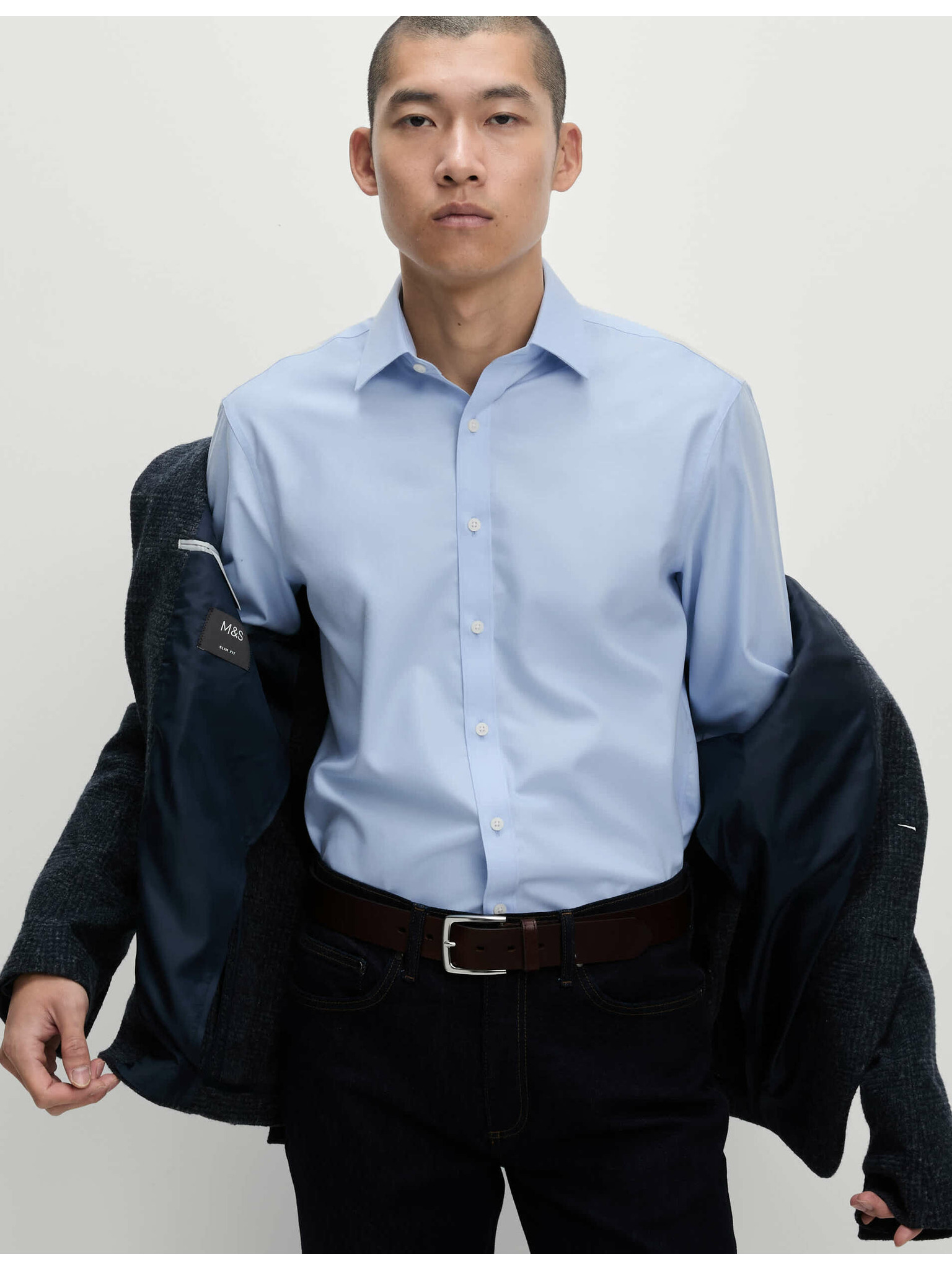 3 db vékony szabású ing pamut keverékből, Marks & Spencer kék