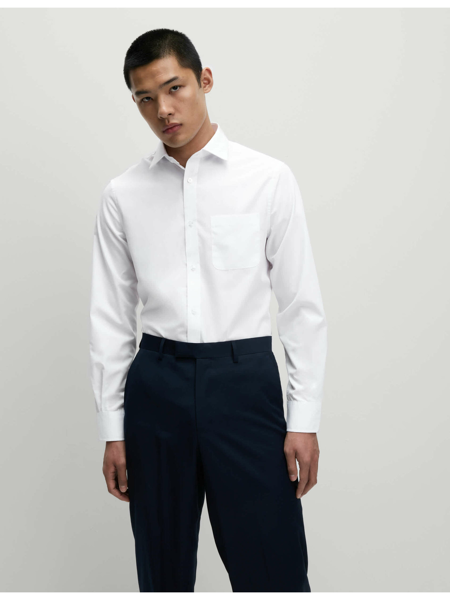 Marks & Spencer fehér, keskeny szabású pamuting vasalást nem igénylő anyagból