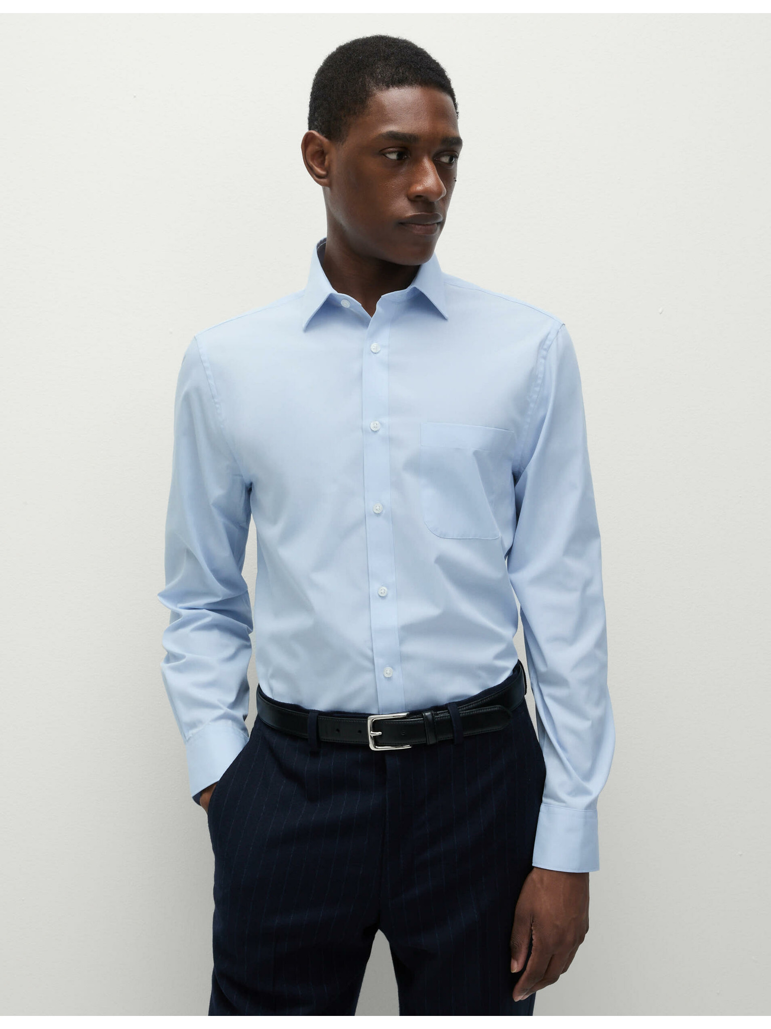 Marks & Spencer kék, klasszikus szabású pamuting vasalást nem igénylő anyagból