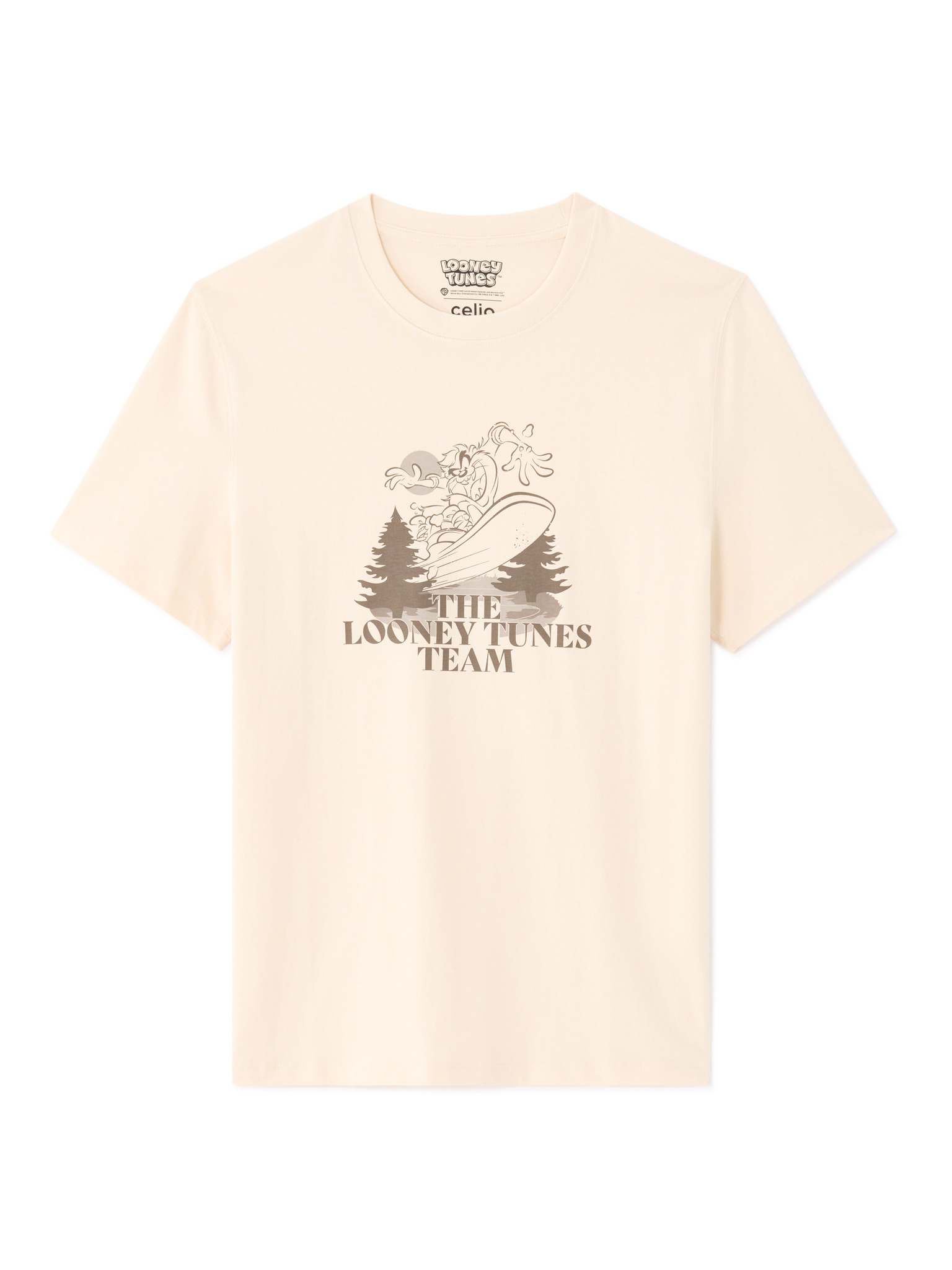 Férfi pamut póló nyomattal és kerek nyakkivágással - bézs