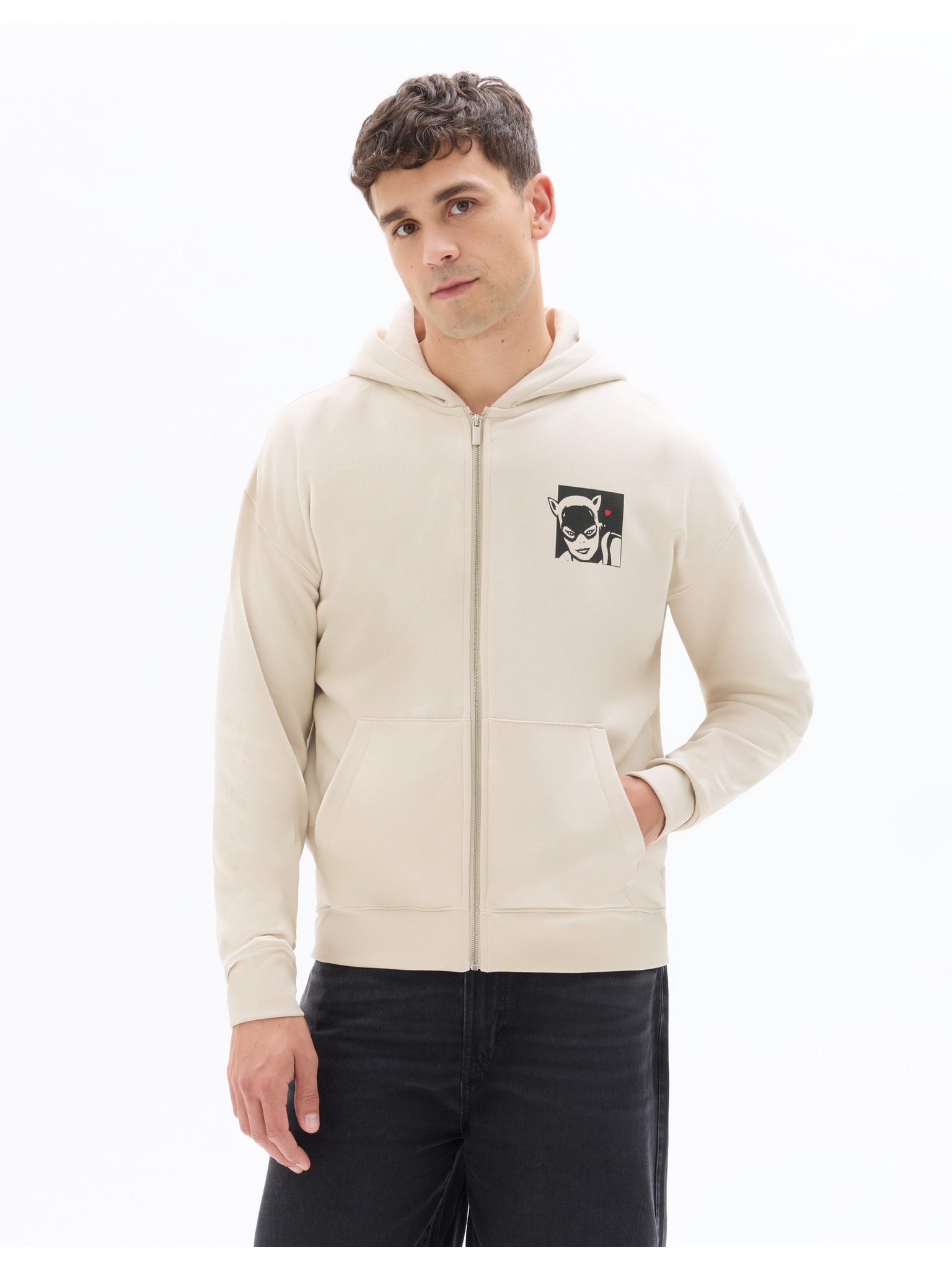 Bézs férfi cipzáras kapucnis pulóver Celio Fethree