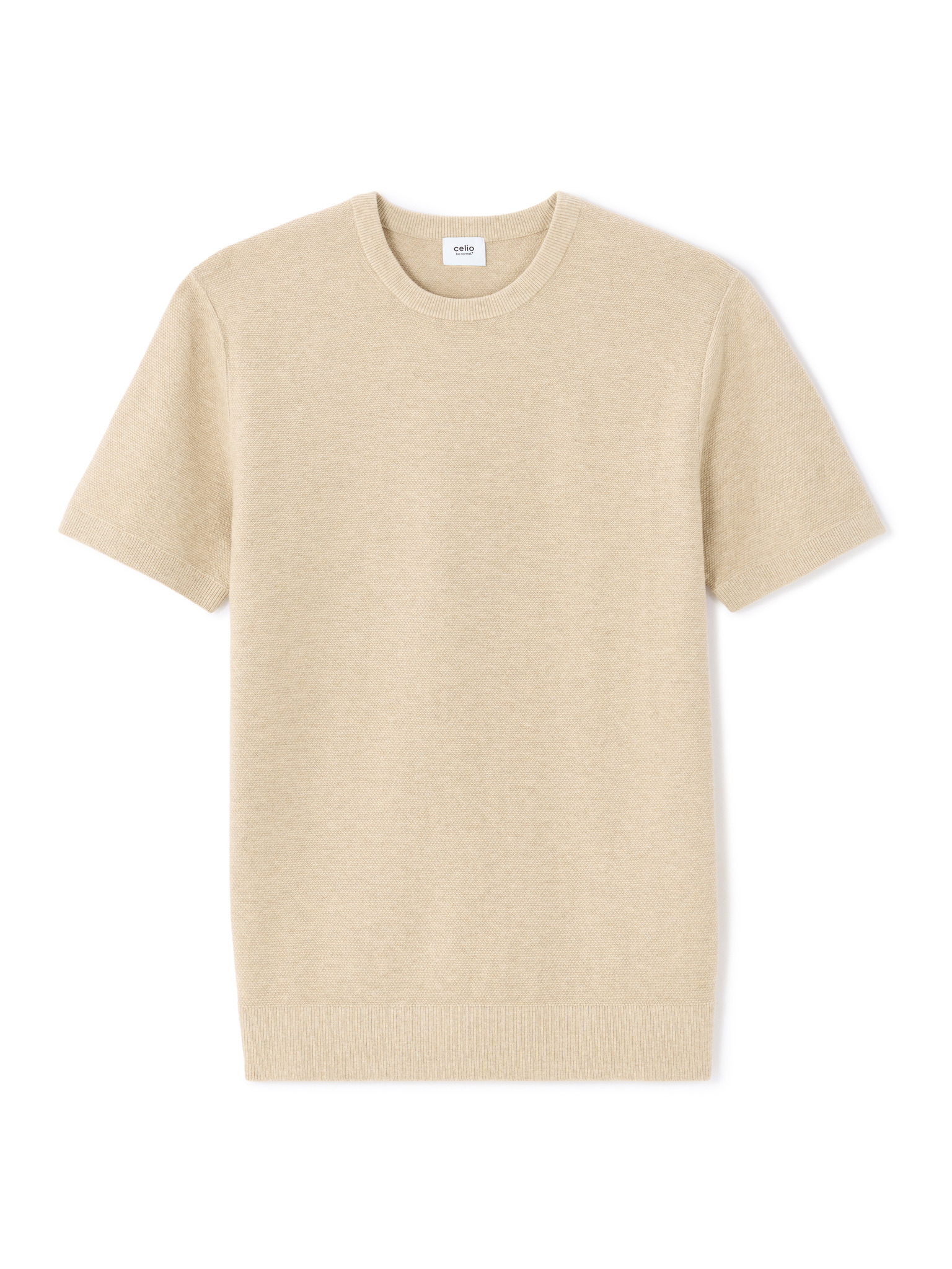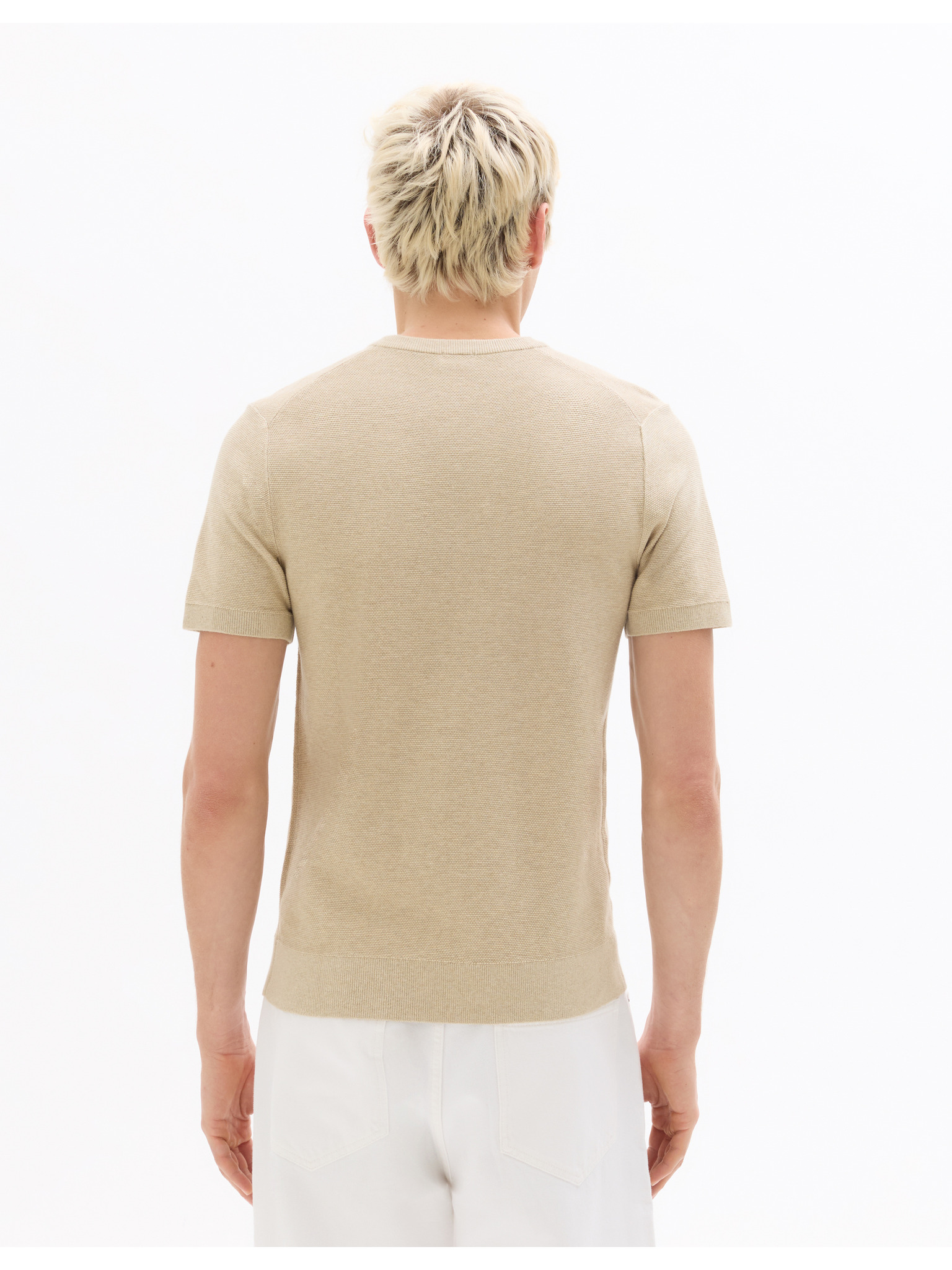 Férfi strukturált kötött pamut póló - bézs