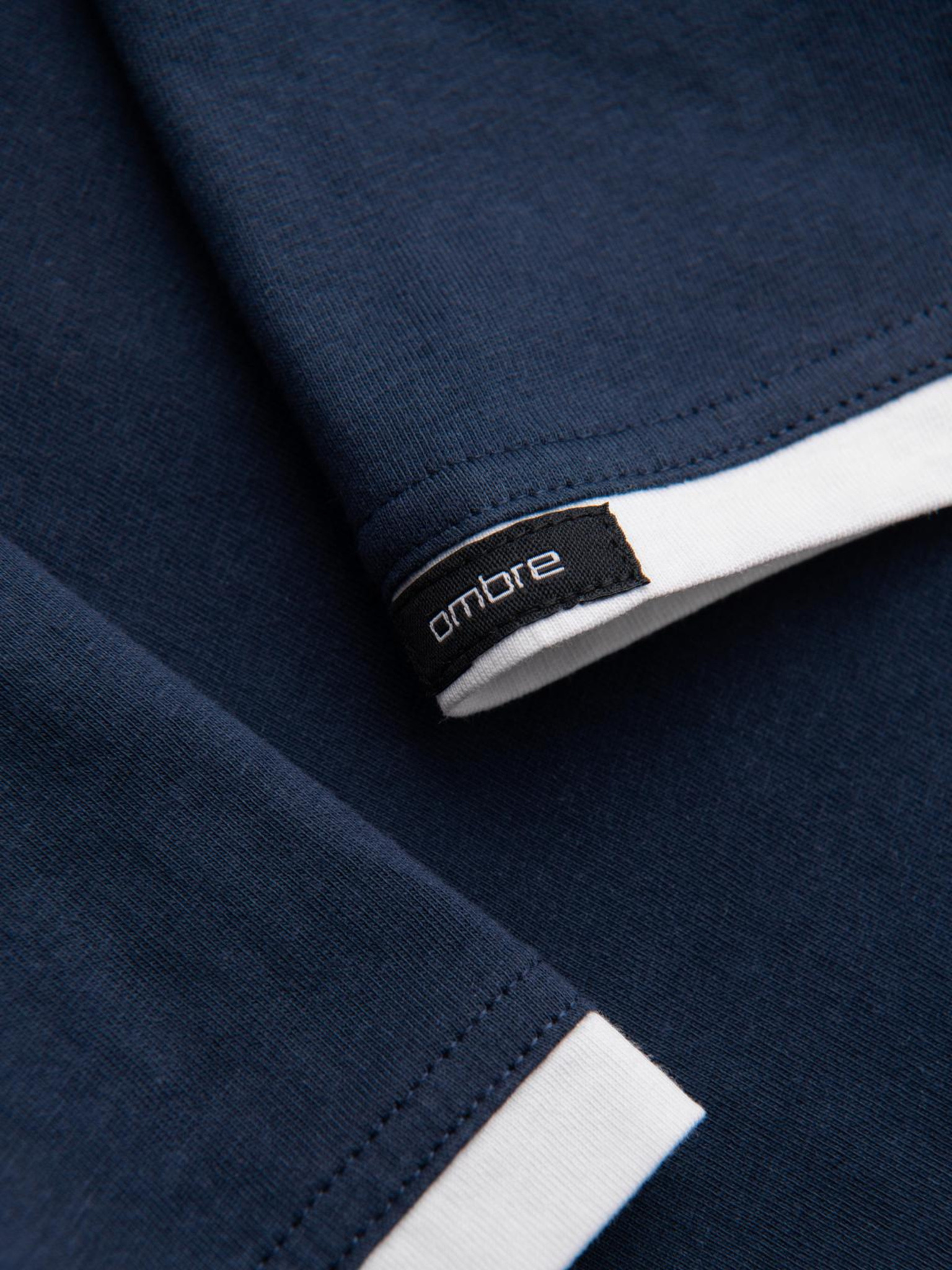 Férfi pamut kapucnis póló - sötét kék V4 OM-TSCT-0256 Ombre Clothing