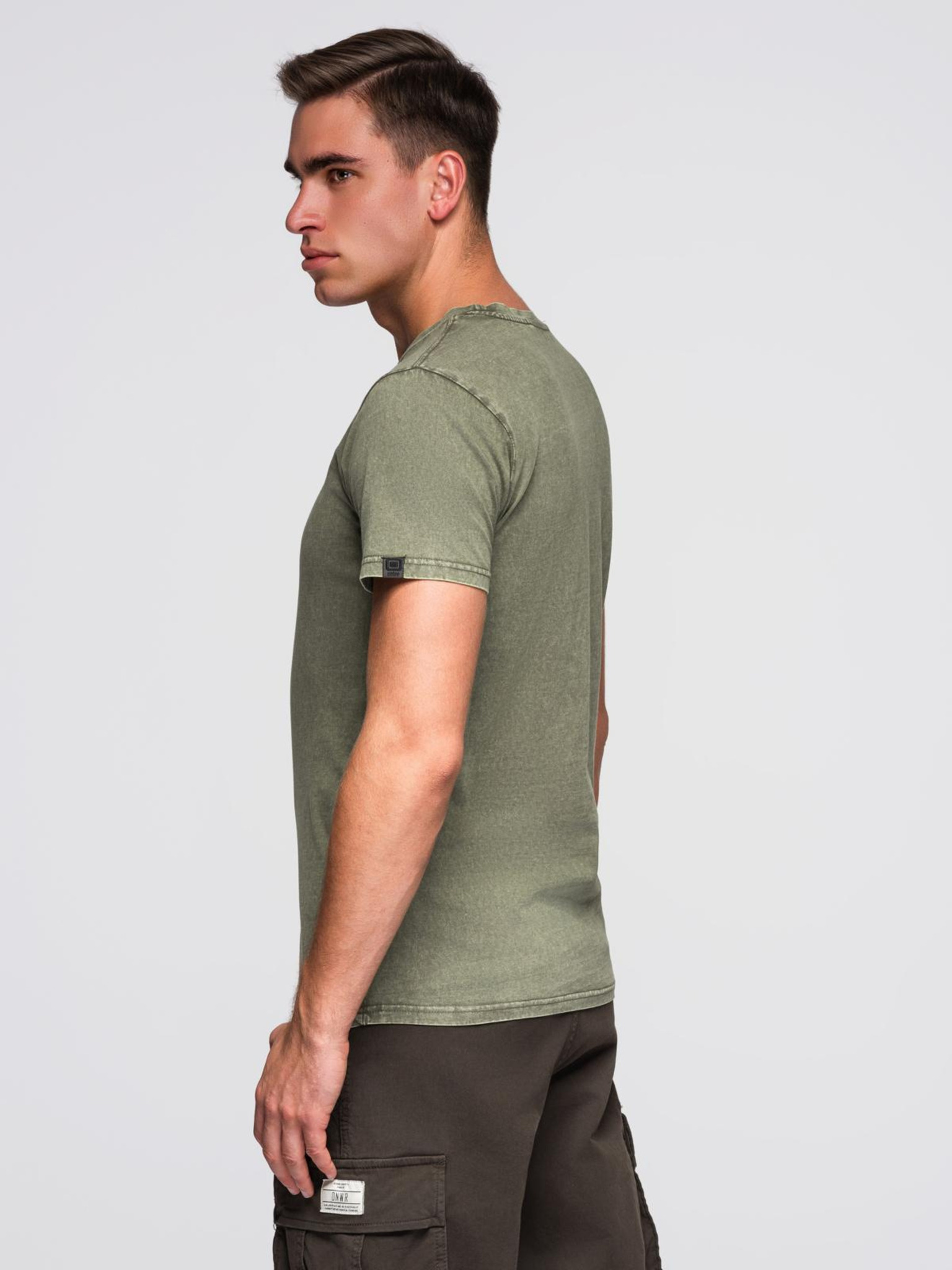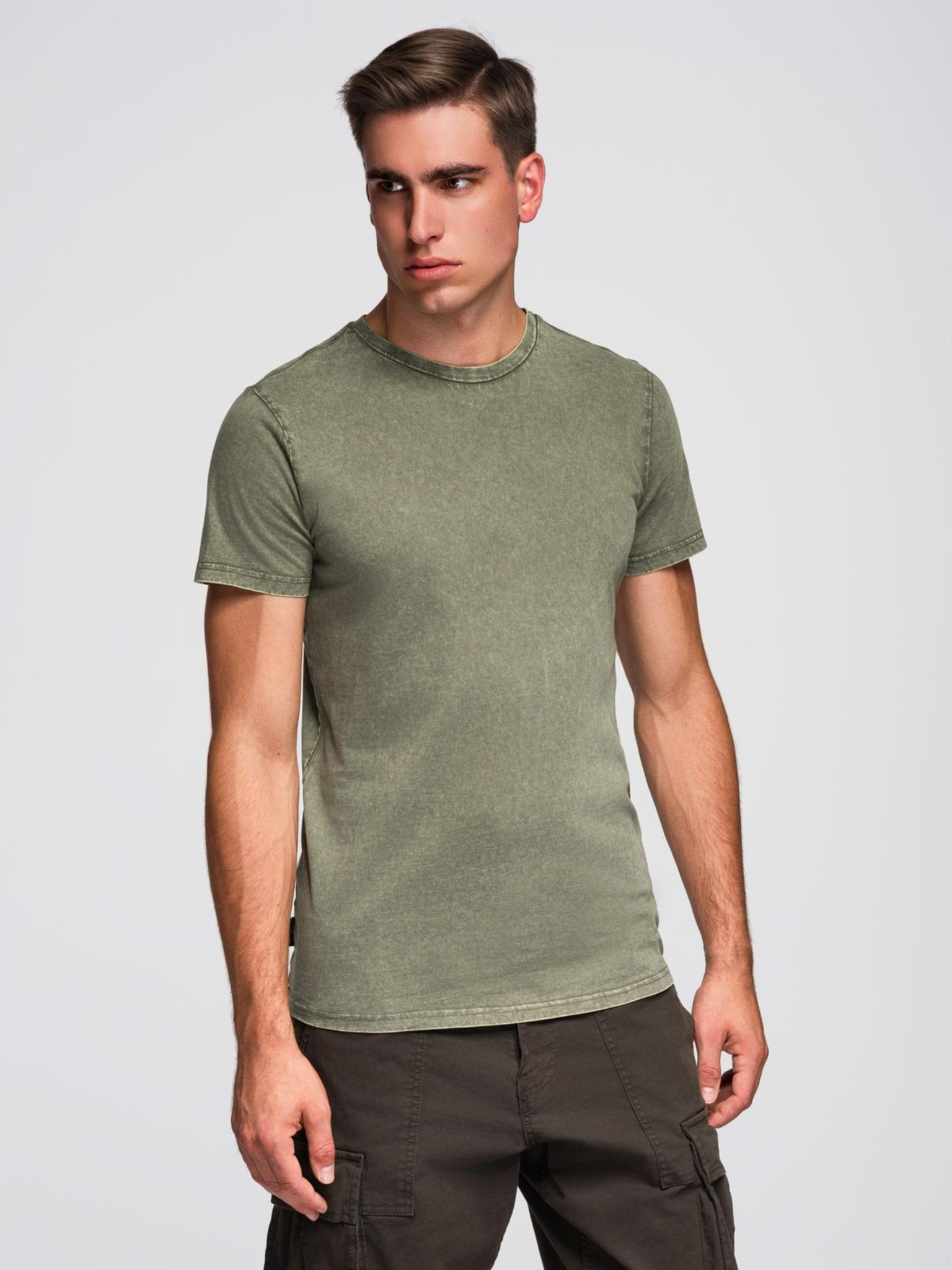 Férfi pamut LOOSE FIT póló kerek nyakkivágással - szürkezöld V3 OM-TSBC-0267 Ombre Clothing