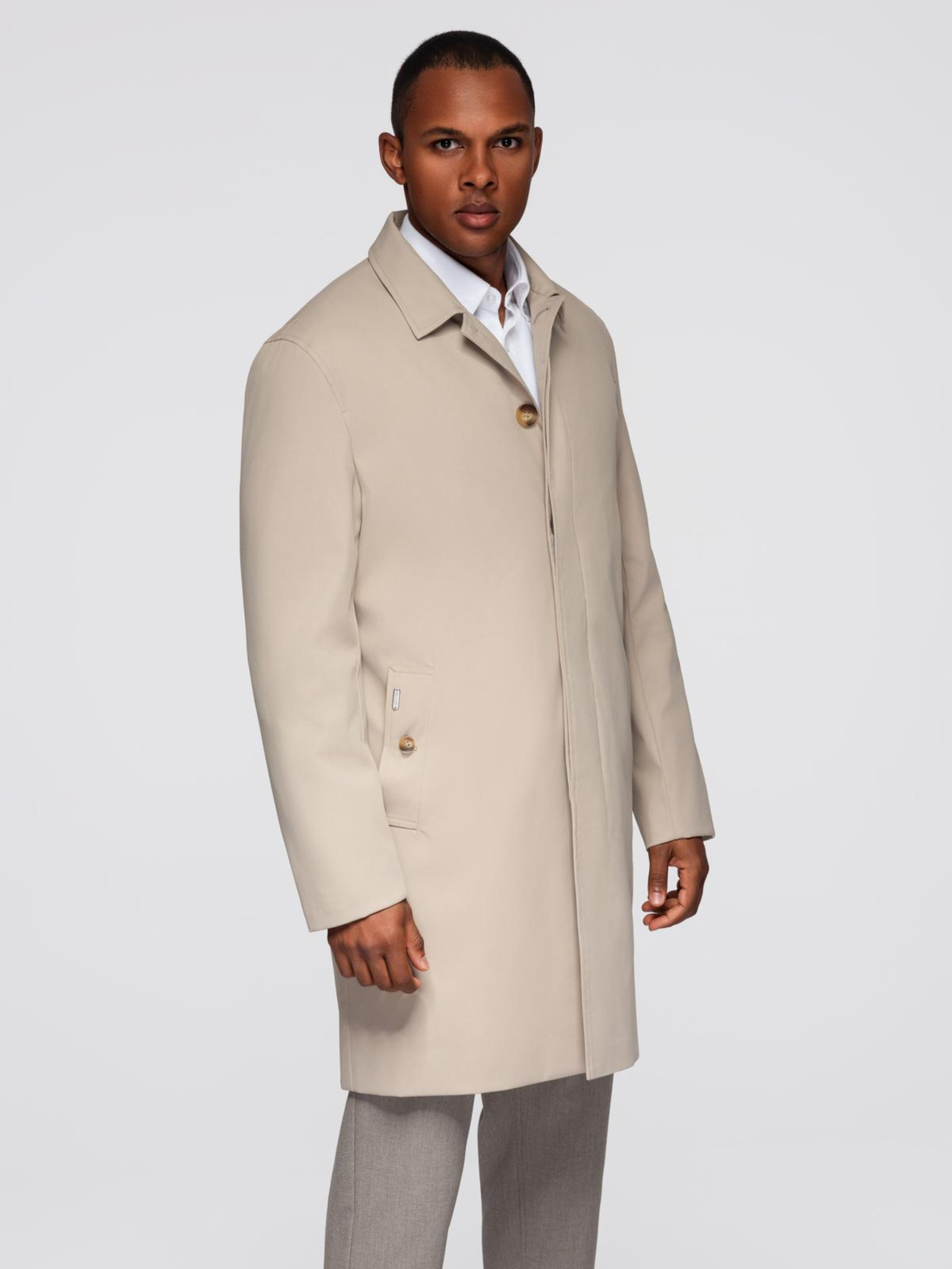 Férfi könnyű egysoros kabát - bézs V7 OM-COWC-0104 Ombre Clothing