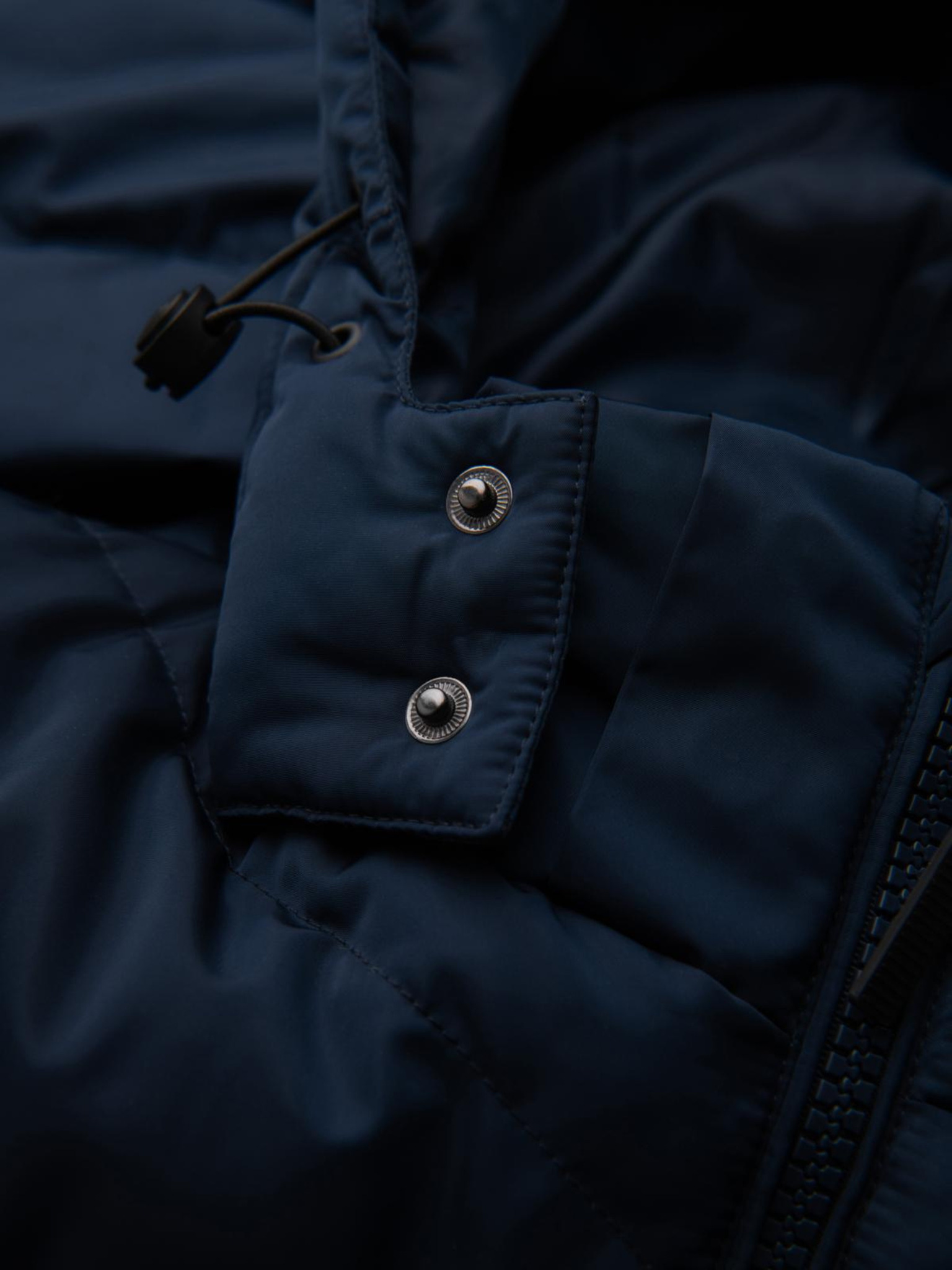 Férfi steppelt kabát kapucnival - sötétkék V4 OM-JAHP-0235 Ombre Clothing