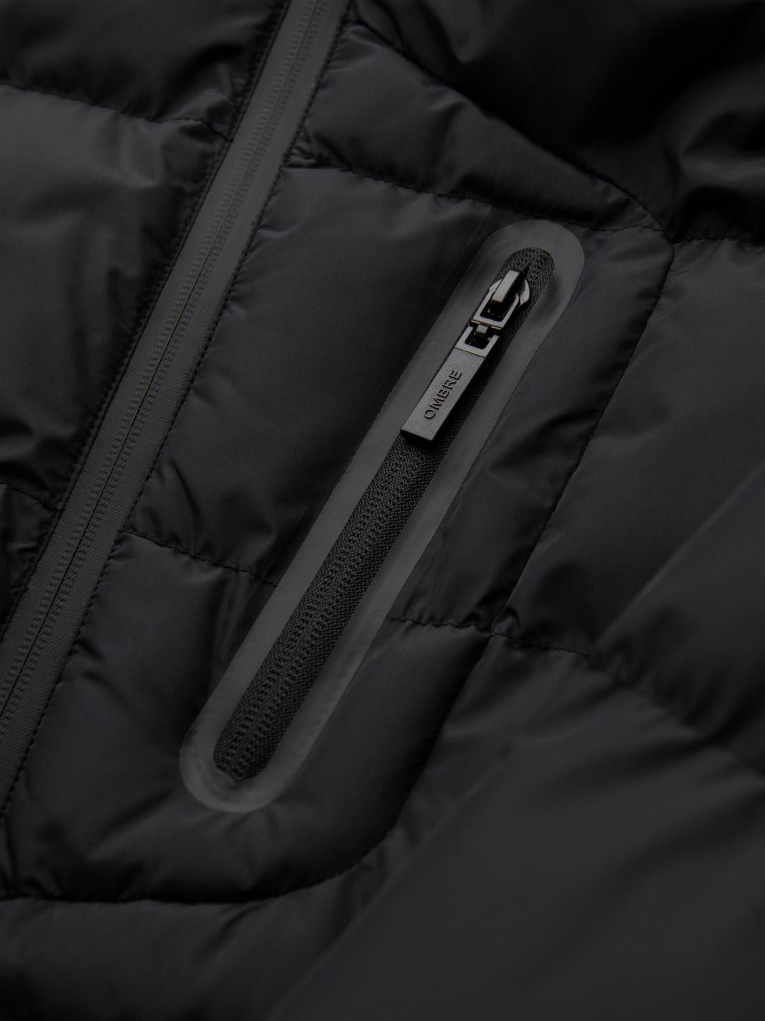Férfi ultrakönnyű kabát természetes puha tollból zsebvel - fekete V1 OM-JALP-0211 Ombre Clothing