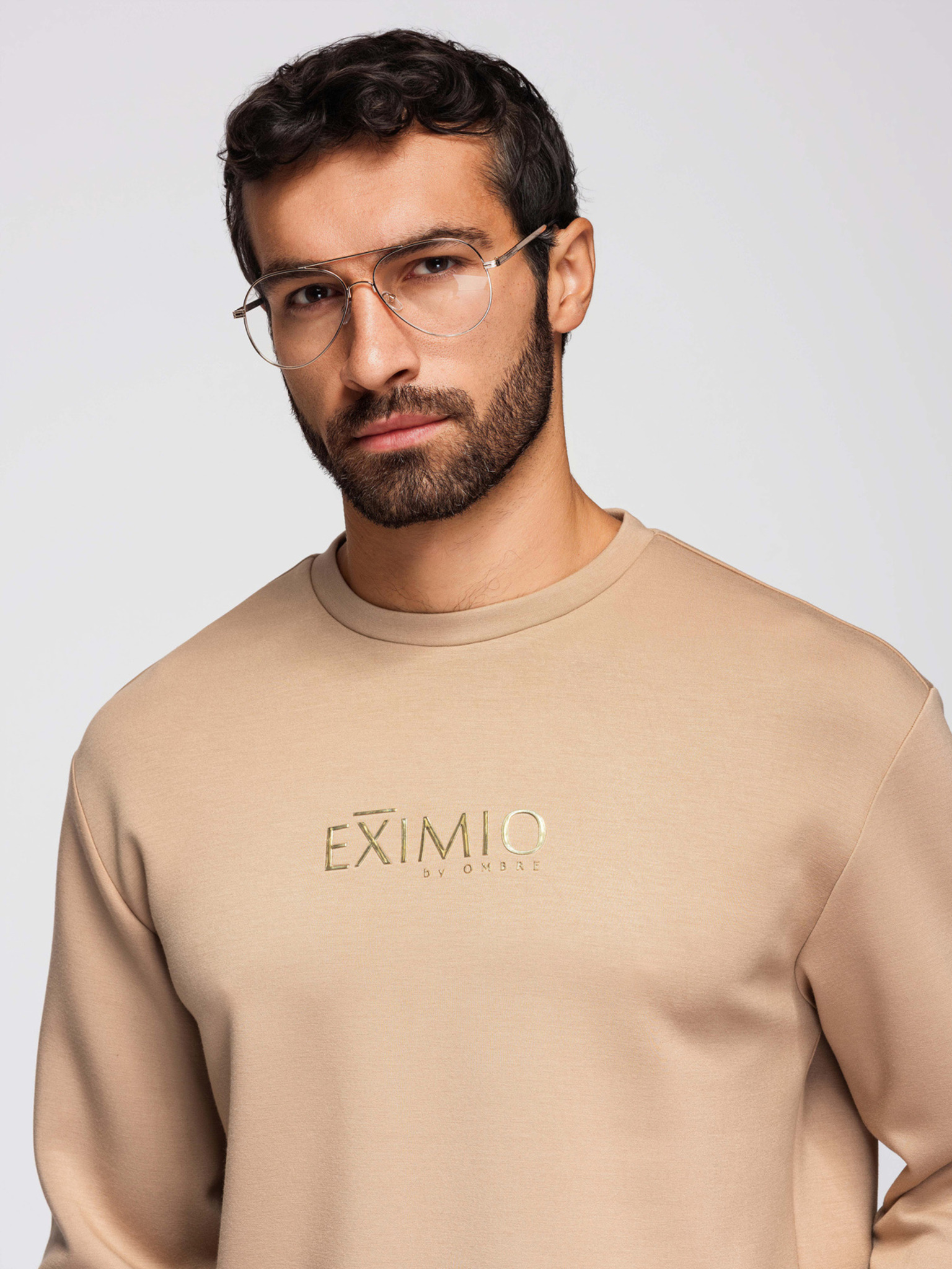 Férfi fleece szett gallérral ellátott pulóver + jogger nadrág - ecru V2 Z117 Ombre Clothing