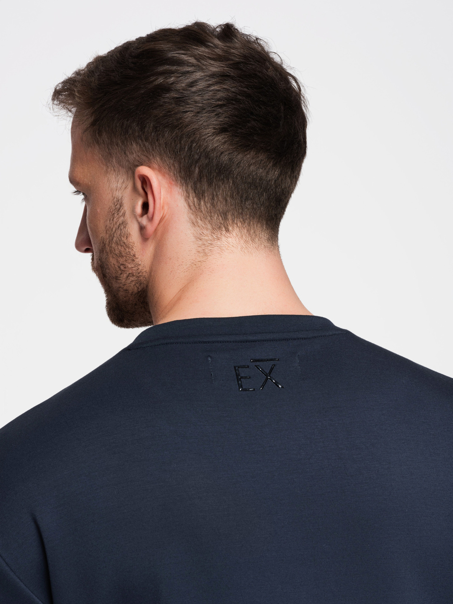 Férfi pulóver kerek nyakkivágással és felvarrással - sötétkék V2 B1713 Ombre Clothing