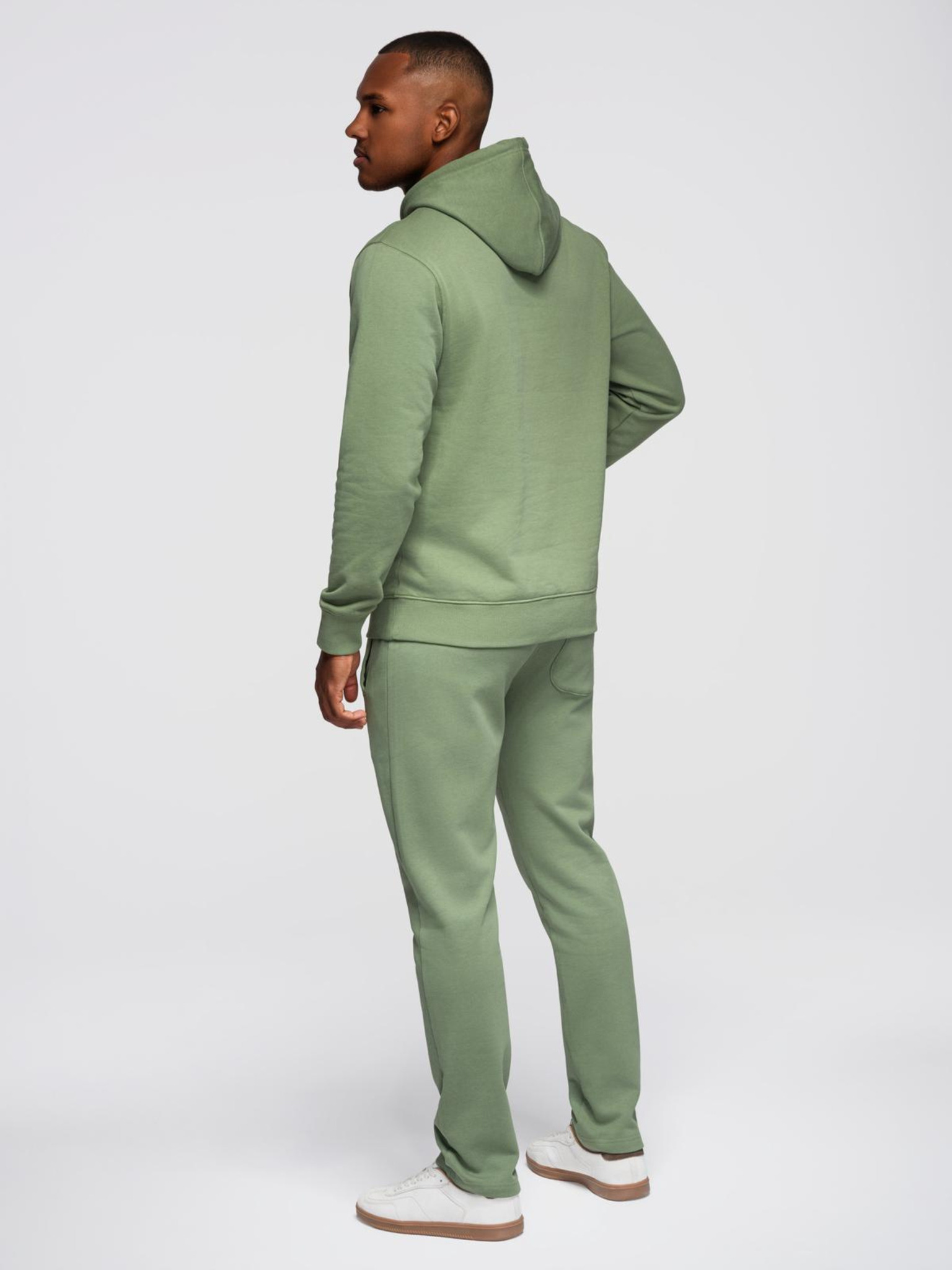 Férfi pamut fleece szett kenguru pulóver + jogger nadrág - világosbézs V1 Z121 Ombre Clothing