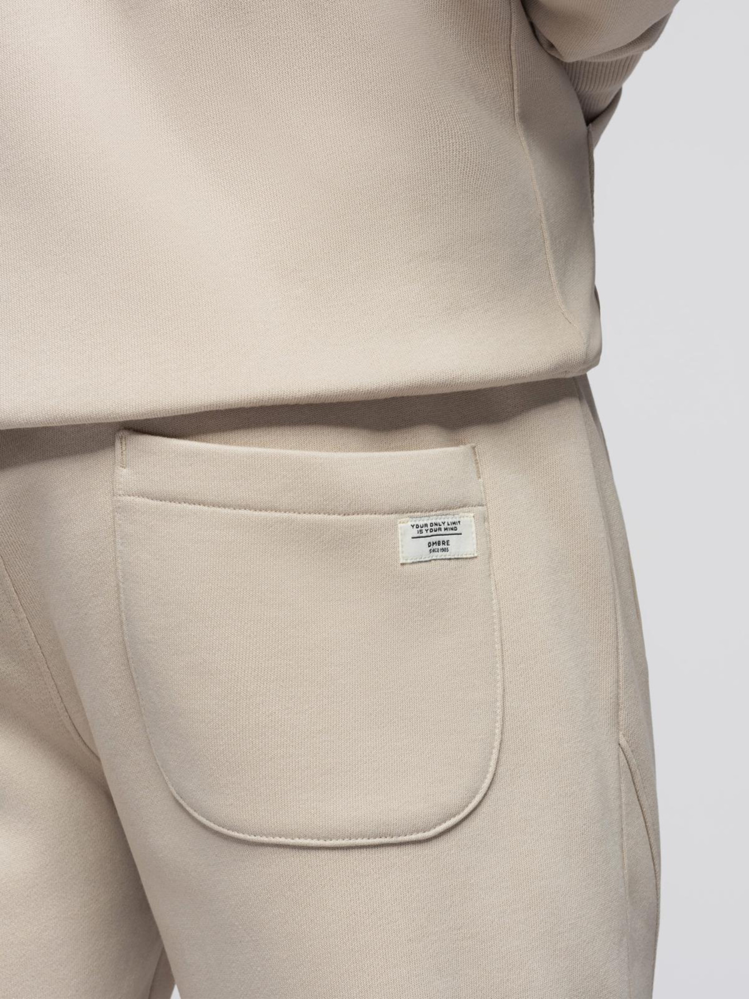 Férfi melegítő szett pulóver + regular fit nadrág - bézs V1 Z120 Ombre Clothing