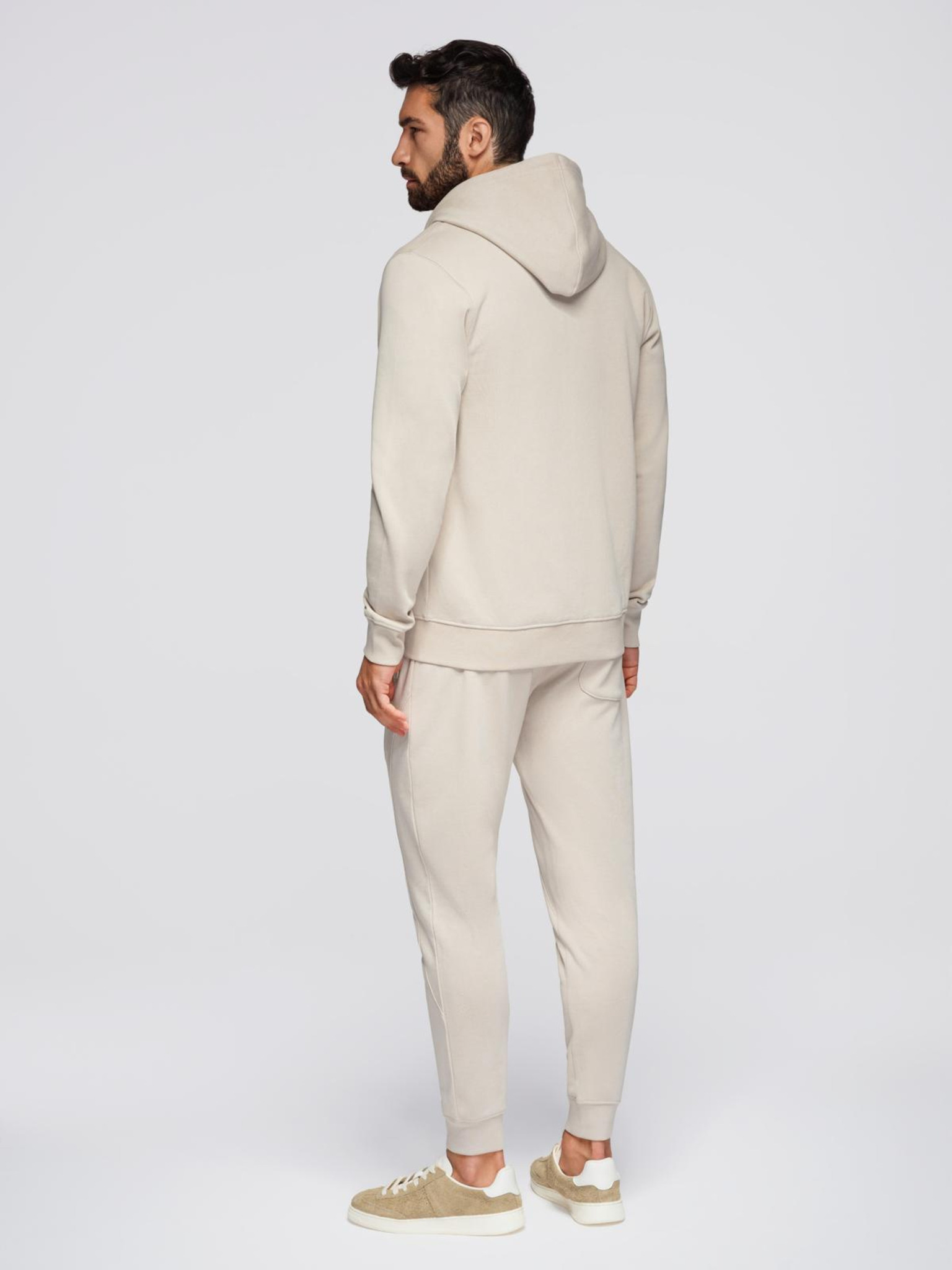 Férfi cipzáras kapucnis pulóver + jogger nadrág - bézs V4 Z118 Ombre Clothing