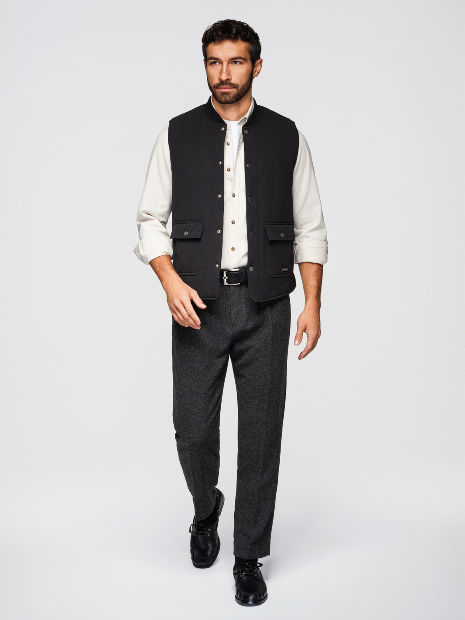 Férfi varrott mellény barackhatással - bézs V1 OM-JAVJ-0277 Ombre Clothing