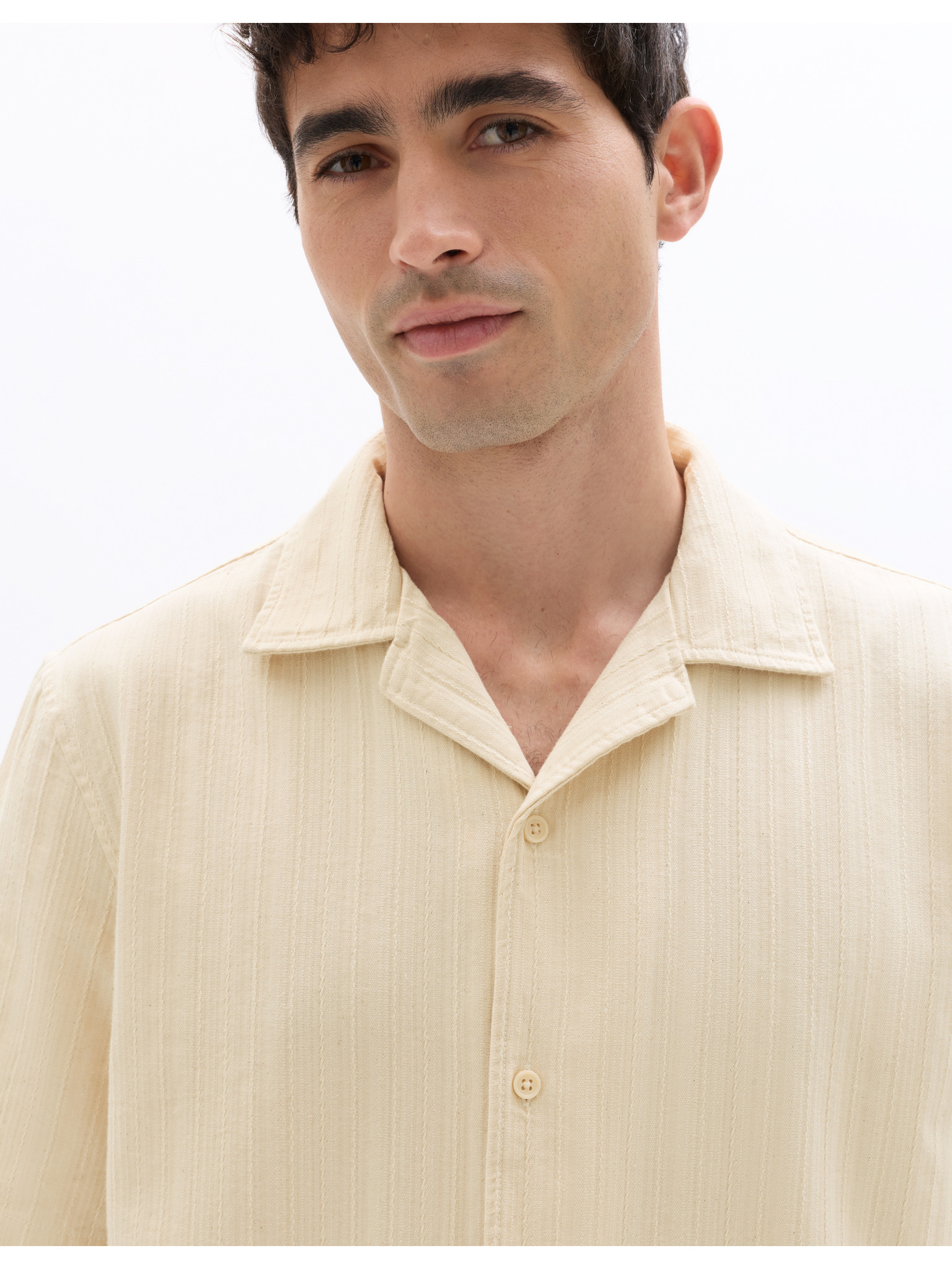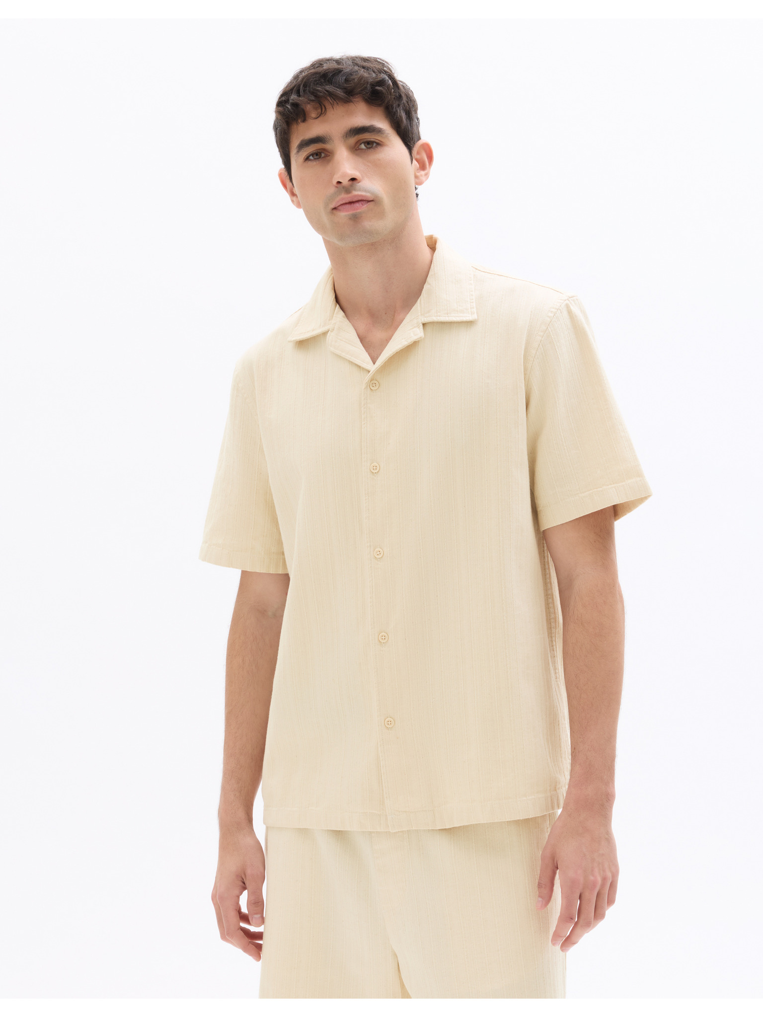 Férfi rövid ujjú ing kubai gallérral bézs Ombre Ruházat