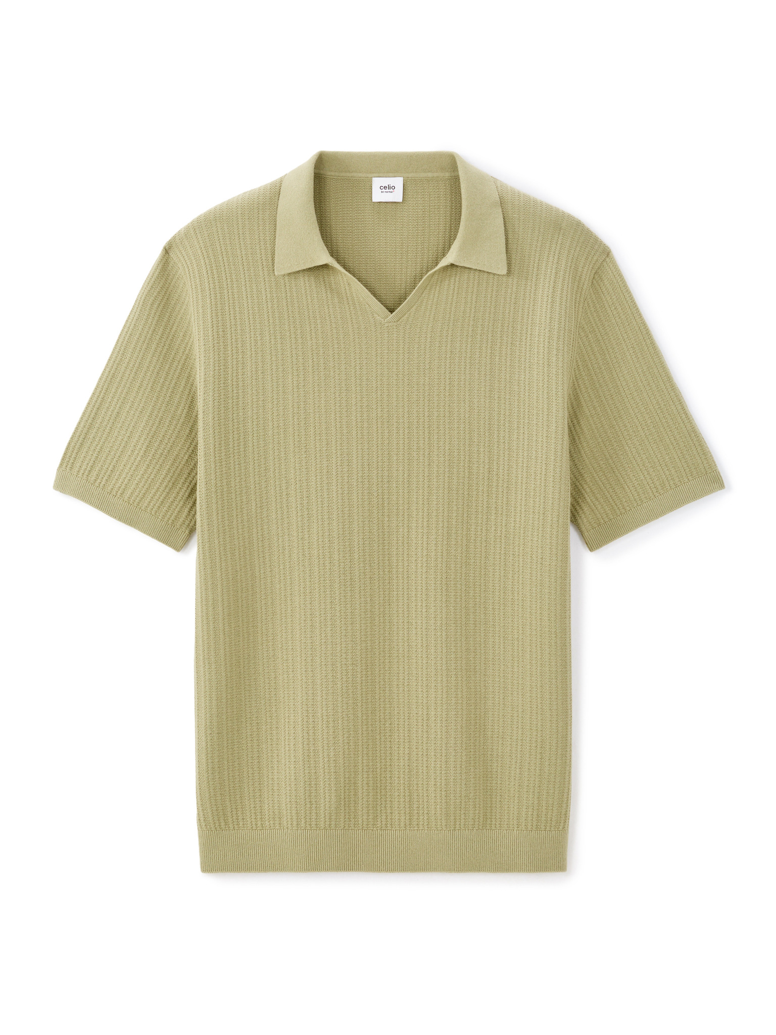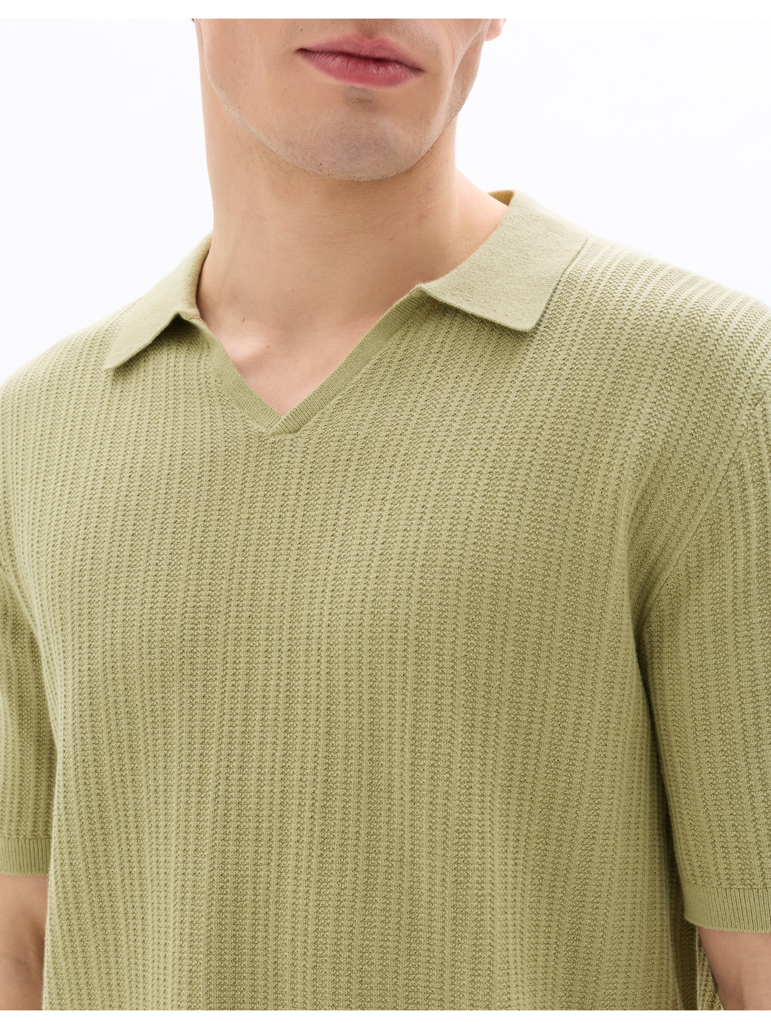 Férfi kerek nyakkivágású gofri textúrájú póló - pisztácia V4 OM-TSCT-0197 Ombre Clothing