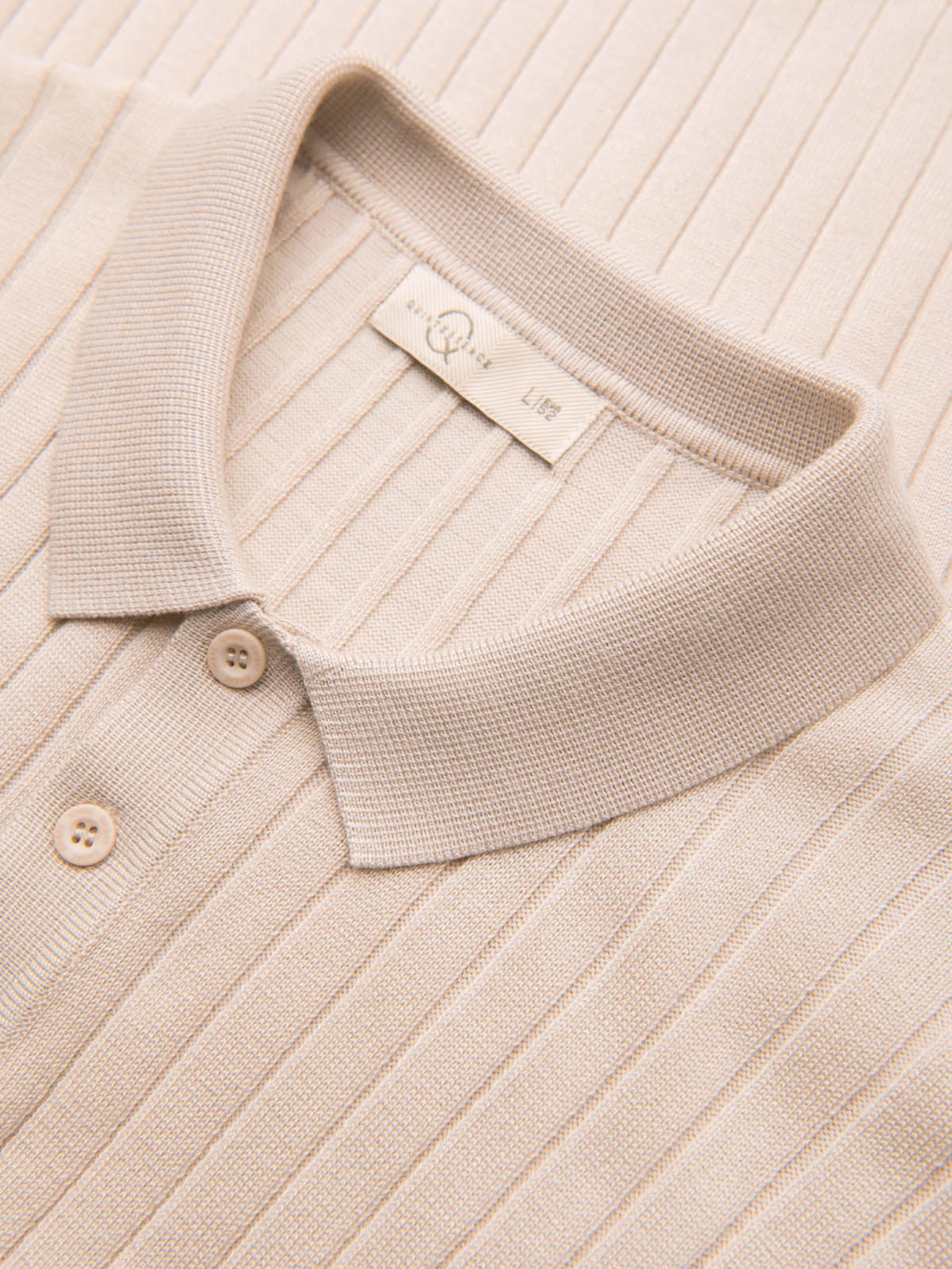 Hosszú ujjú galléros póló elegáns márkás gombokkal - krém V2 OM-POLS-0139 Ombre Clothing