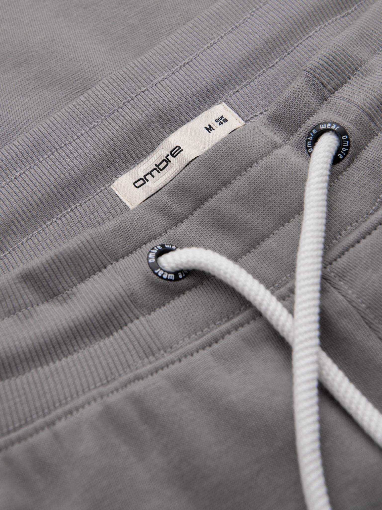 Férfi nadrág egyenes szárral és gumi részletekkel - szürke V3 OM-PASK-0281 Ombre Clothing