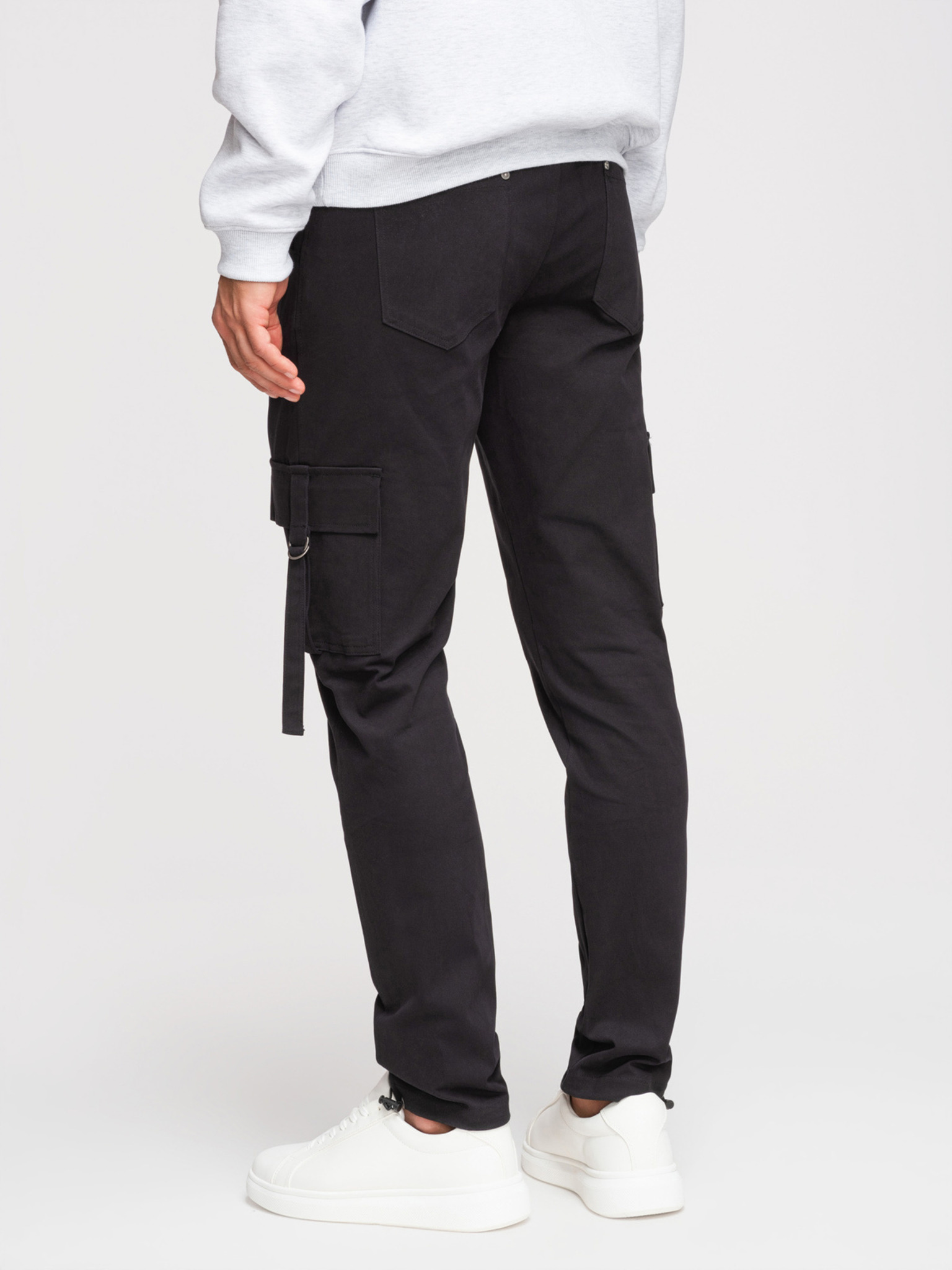 Férfi cargo nadrág egyenes szárral és húzható szegéllyel - grafitszürke V3 P1516 Ombre Clothing
