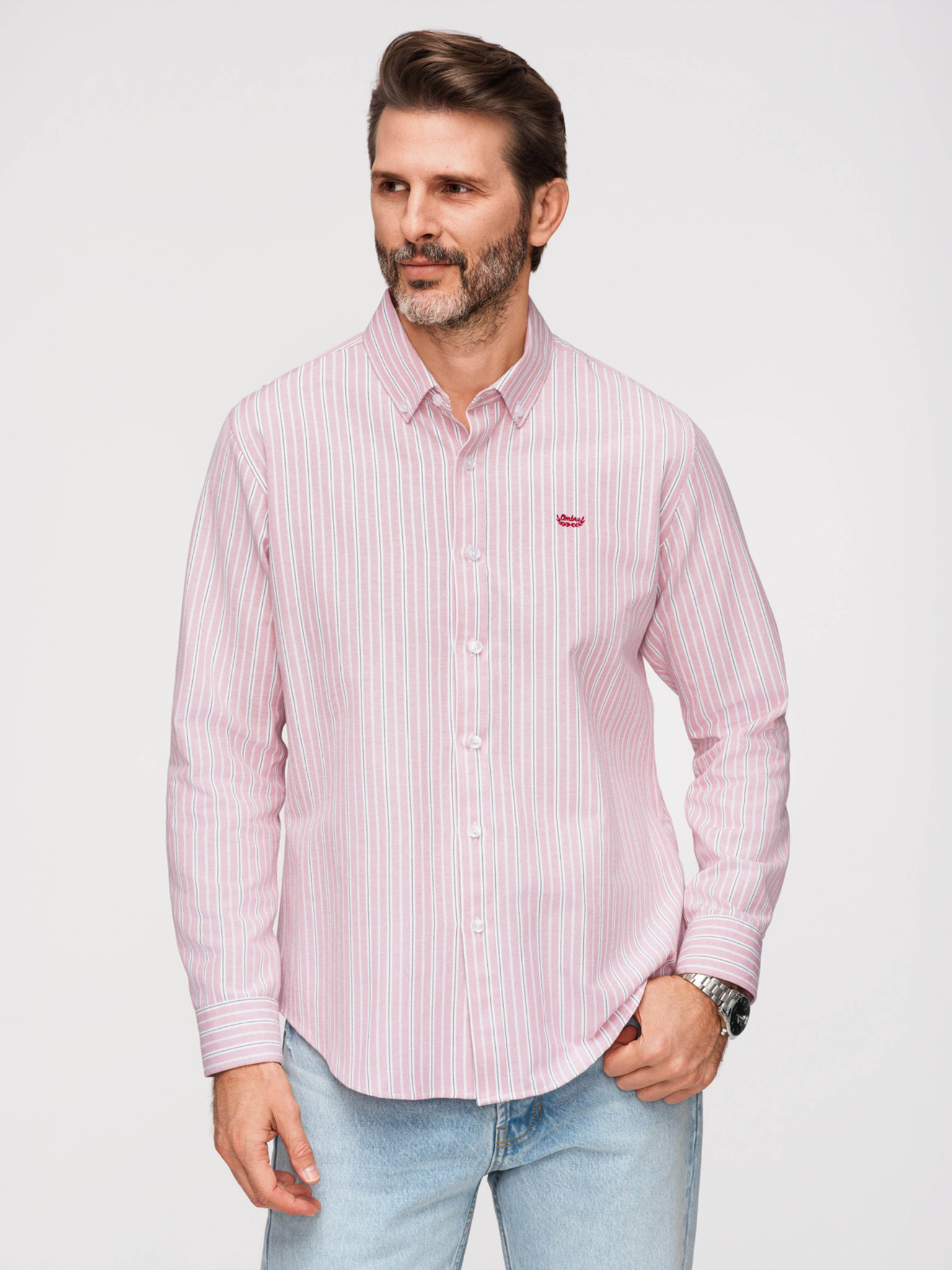Férfi pamut ing REGULAR FIT zsebvel - rózsaszín V3 K700 Ombre Clothing