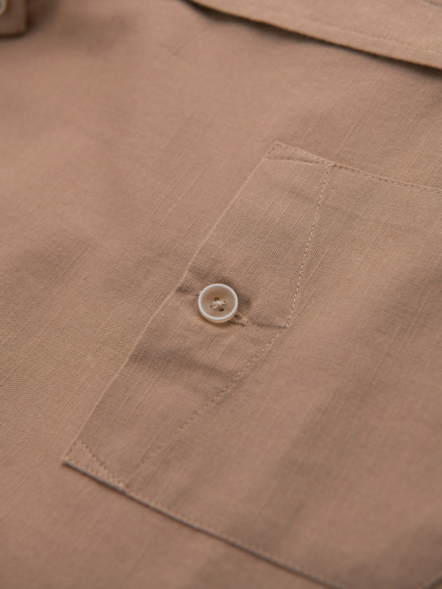 Férfi vászon ing álló gallérral és zsebbel REGULAR FIT - világosbarna