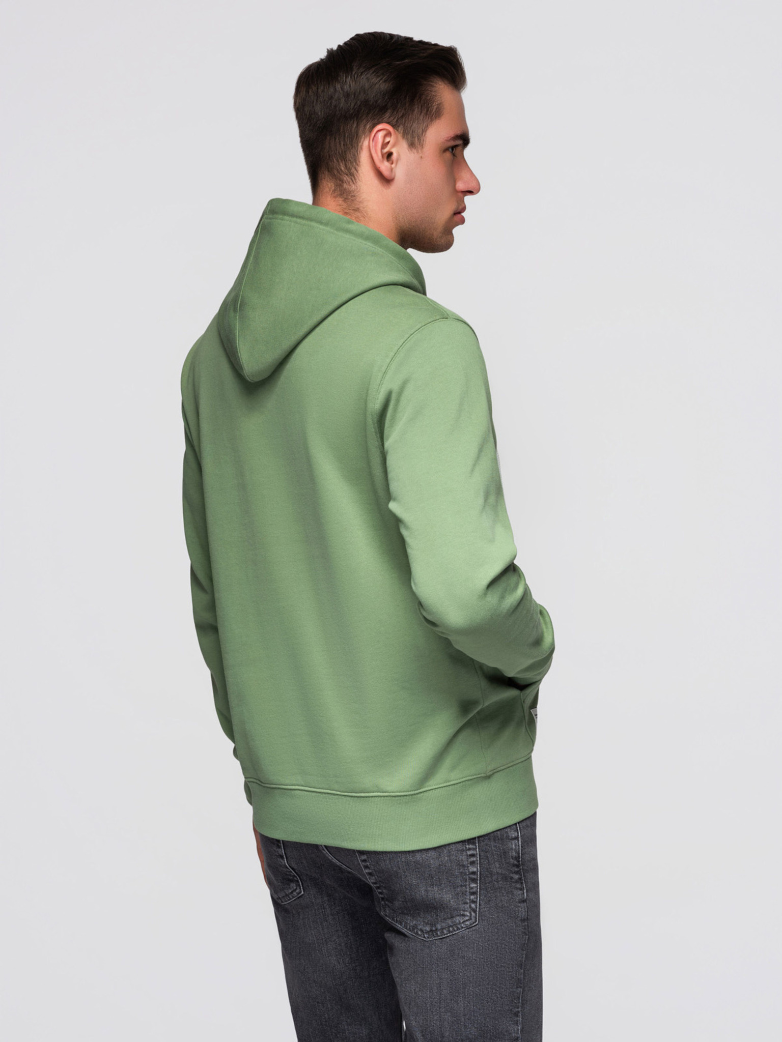 Férfi pamut pulóver BASIC zippes kapucnival - zöld V3 OM-SSBZ-0272 Ombre Clothing