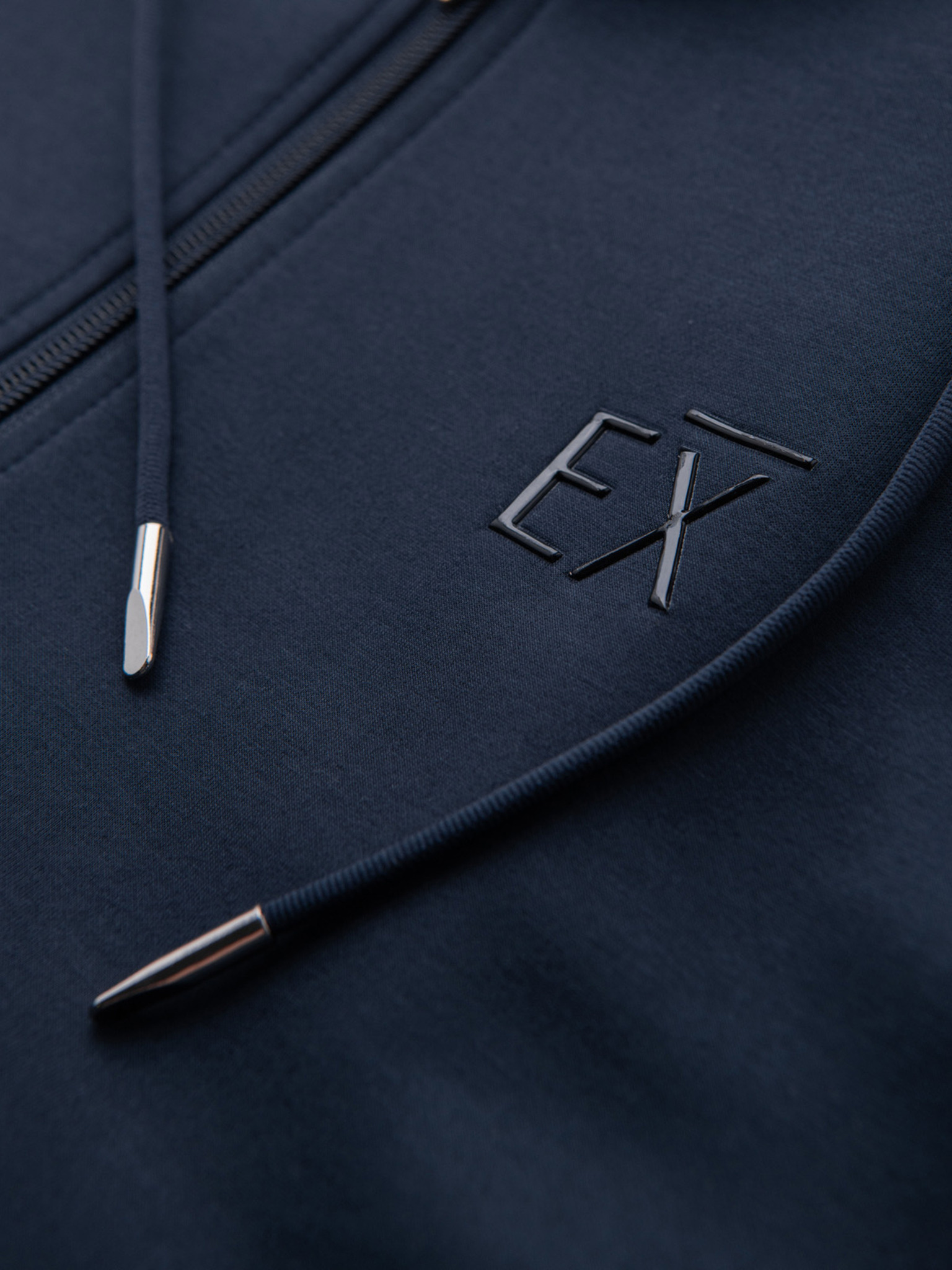 Férfi pamut pulóver BASIC zippes kapucnival - sötétkék V4 OM-SSBZ-0272 Ombre Clothing
