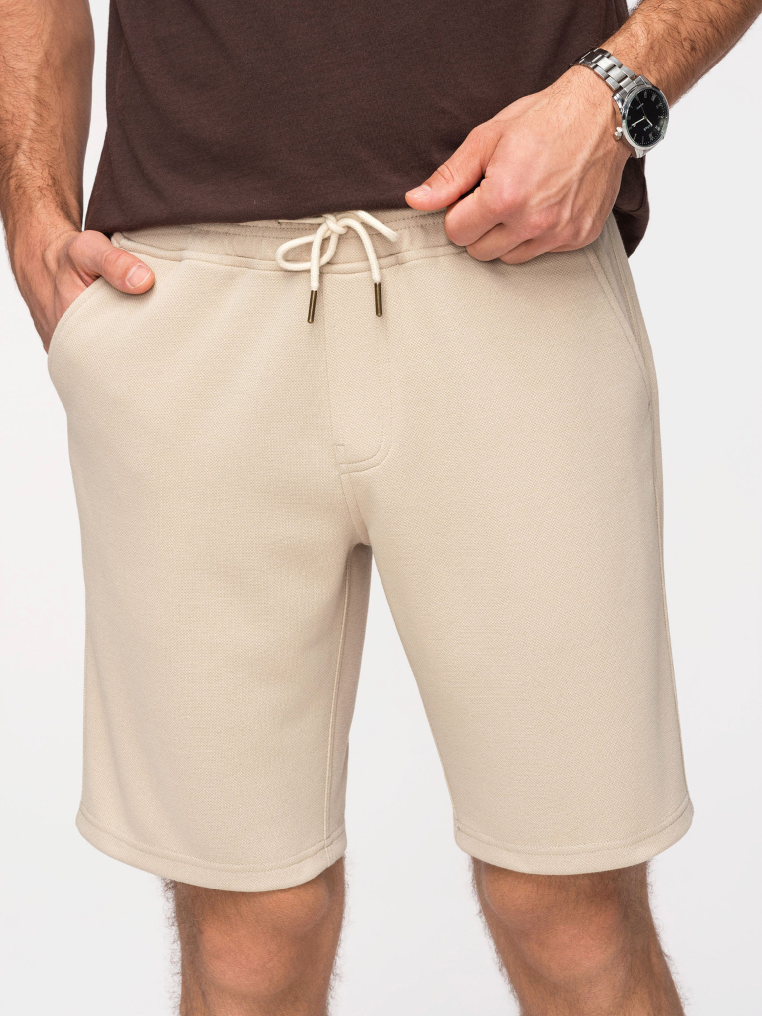 Férfi kötött rövidnadrág állítható derékkal - bézs V1 OM-SRCS-0202 Ombre Clothing