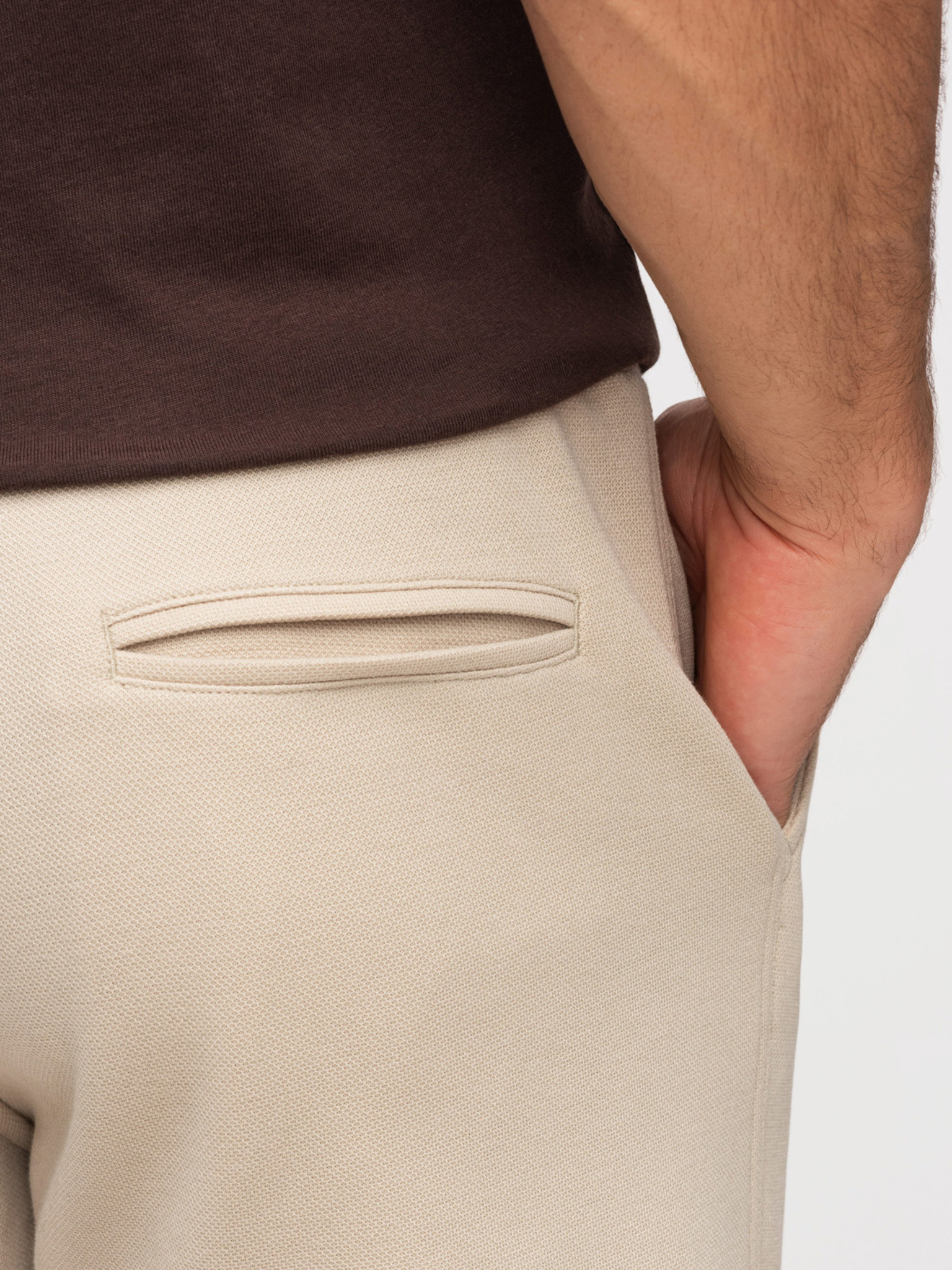 Férfi rövidnadrág REGULAR FIT sima kötöttből - bézs V3 OM-SRBC-0153 Ombre Clothing