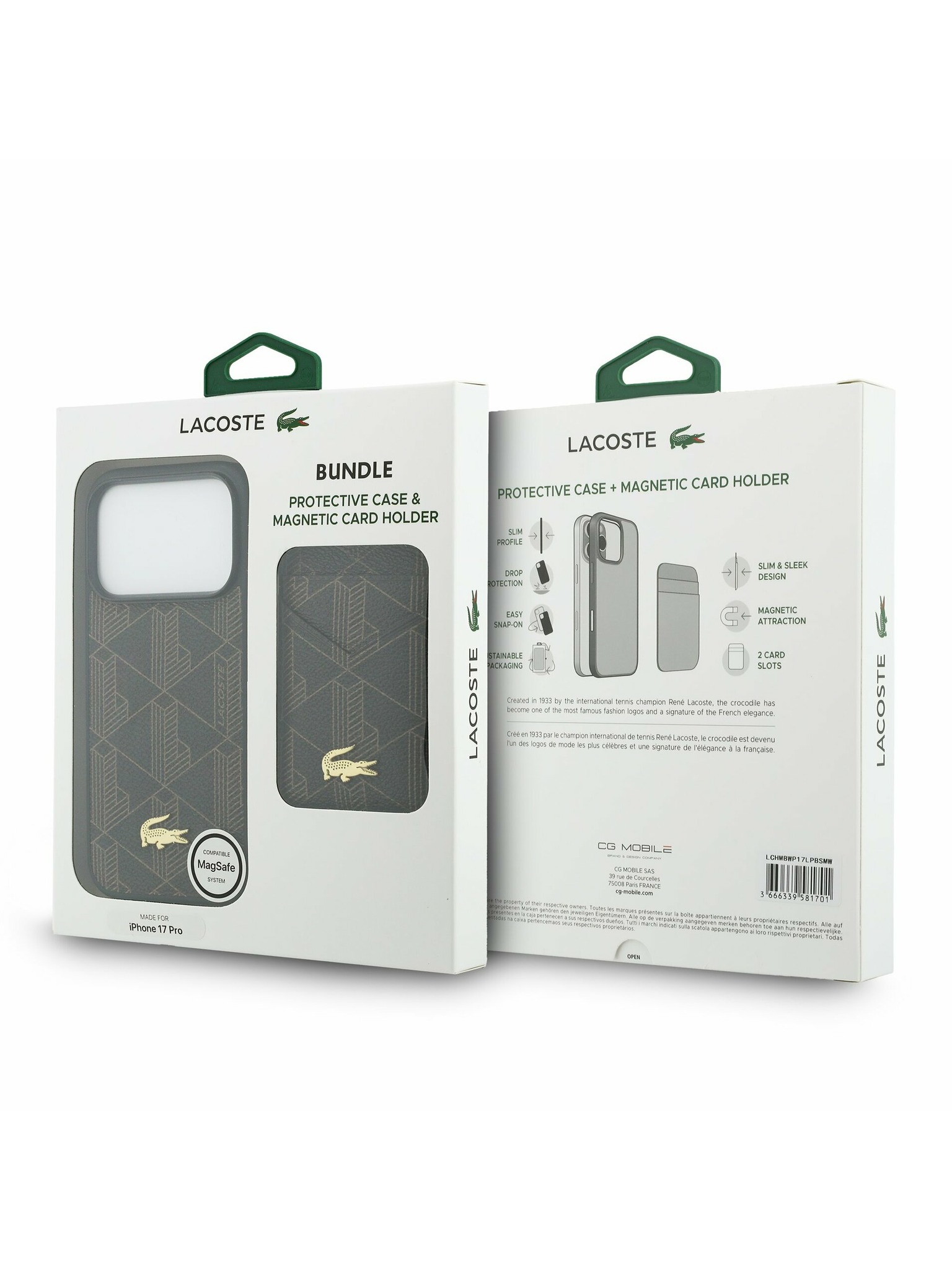 Lacoste Iconic Petit Pique MagSafe Hátlap + Pénztárca iPhone 17 Pro Max Zöld