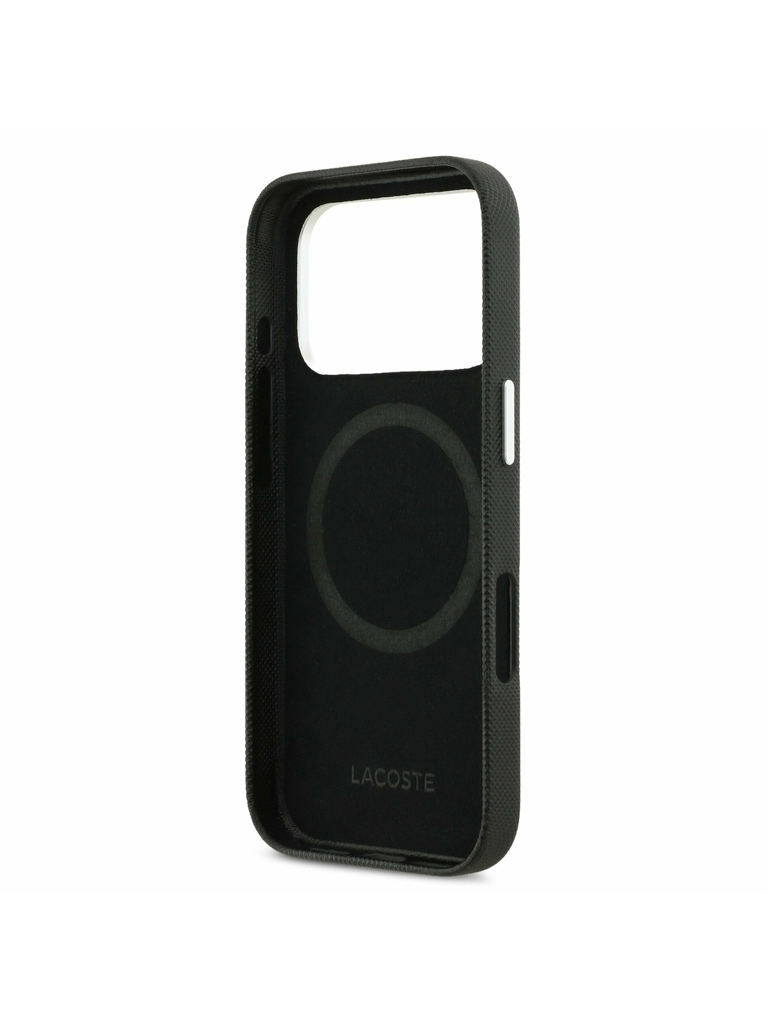 Lacoste PVC Iconic Petit Pique Metal Logo MagSafe Hátlap iPhone 17 Pro-hoz Black
